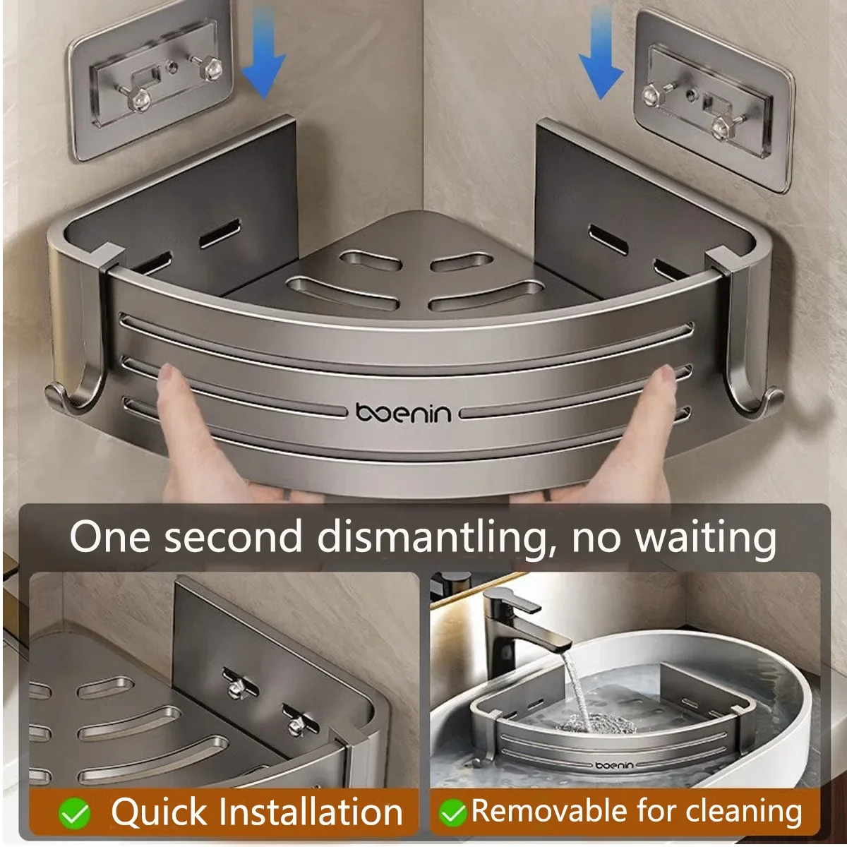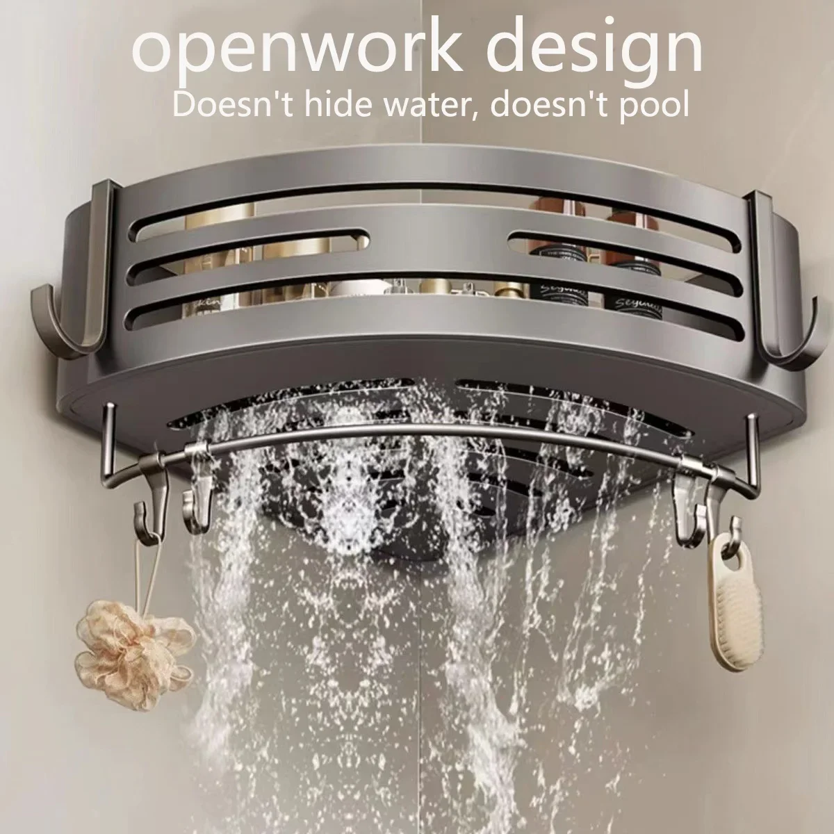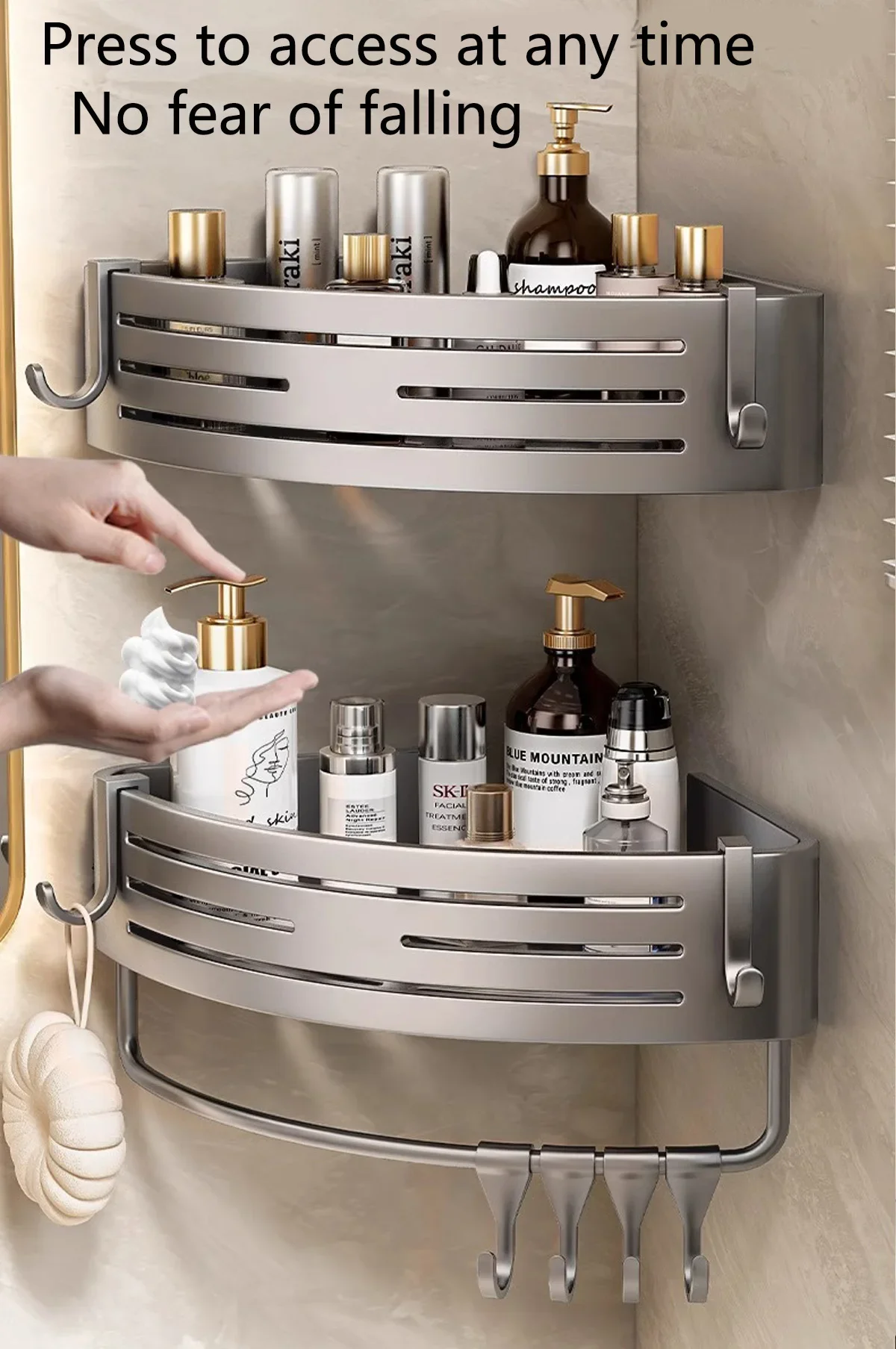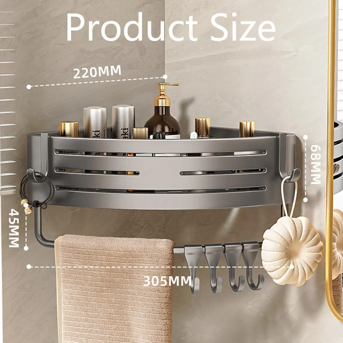 1-2PCS Shower Corner Shelf with Towel Bar Hook Space Aluminum Bathroom Shelf Without Drilling Shampoo Holder Bathroom Accessorie