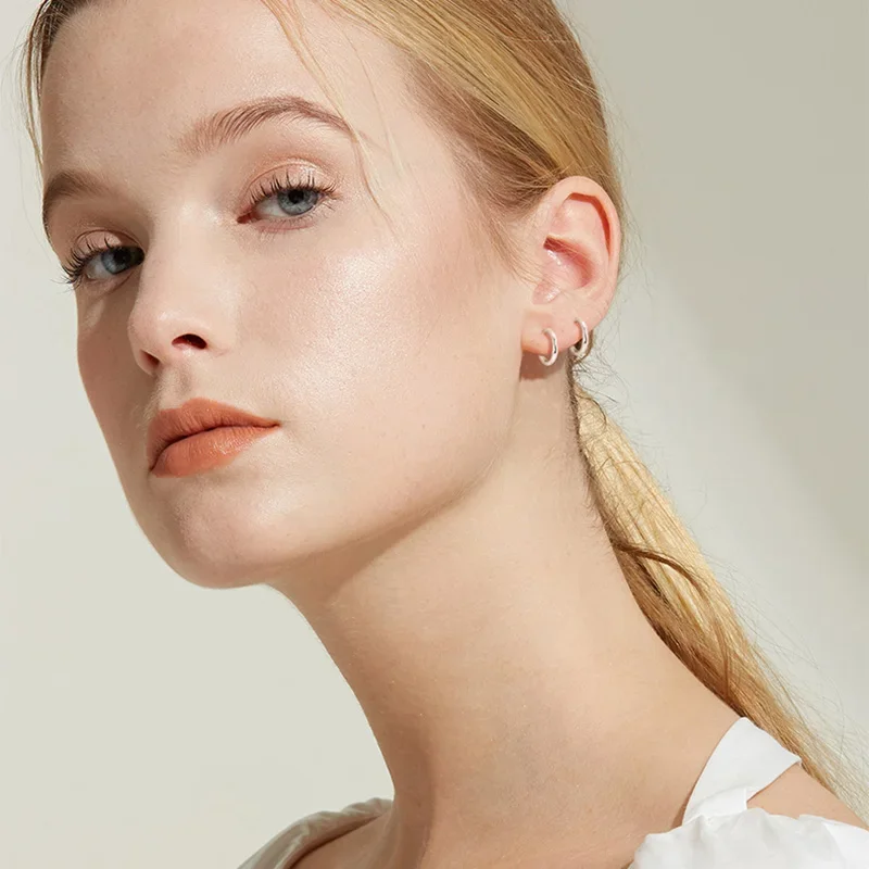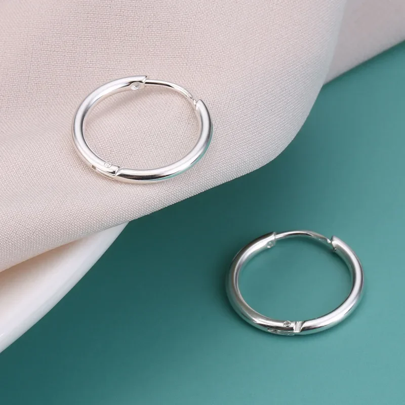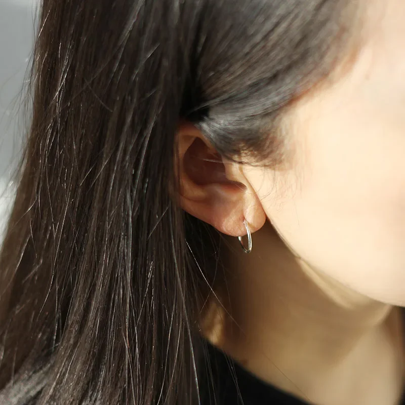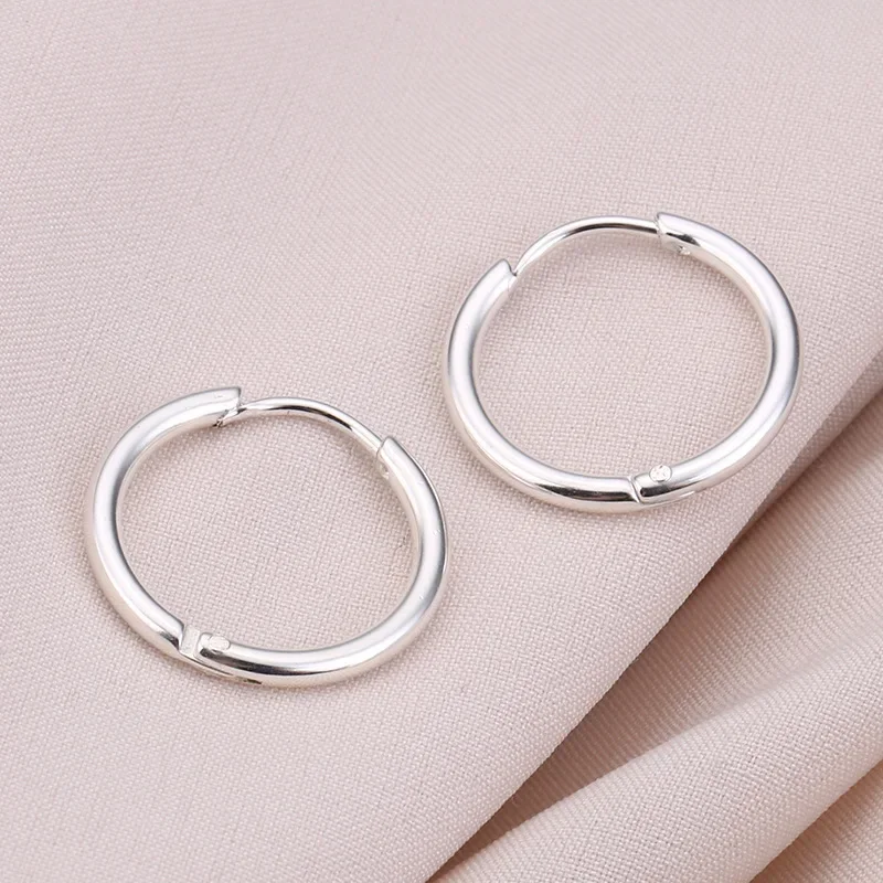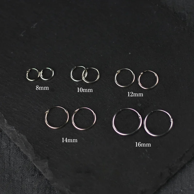 1 pair 2mm Thin Circle Silver color Small Hoops Earring Stainless Steel Anti-allergic Ear Bone Buckle Earring Gothic Ear Jewelry