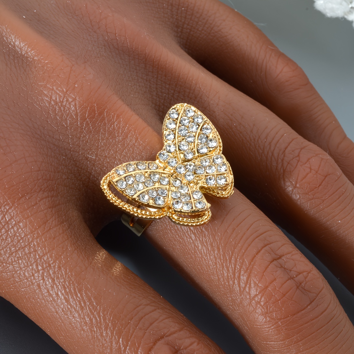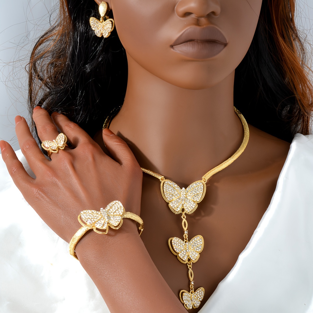 1-Set Exquisite Copper Golden Butterfly Jewelry Set for Women - Necklace, Bangle, Ring, Earrings with Pendant - Perfect Gift for Wedding, Party, Birthday, Anniversary, and Daily Wear