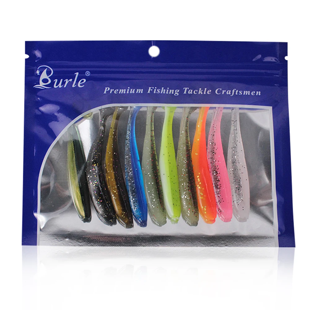 10Pcs 9cm Fishing Lures Plastic T Tail Worm Soft Bait Paddle Tail Swim Baits for Bass Trout Freshwater Saltwater Feature: