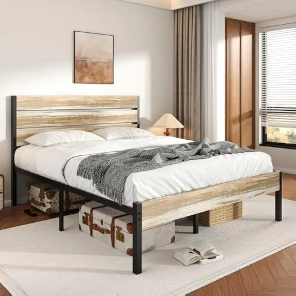 • [Sleep in Style and Comfort] - End your day with the perfect recipe for a restful night's sleep. This queen size bed frame features a wood headboard with clean lines that blend industrial style with modern simplicity. The sturdy footboard ensures your mattress stays securely in place, so you can rest easy.