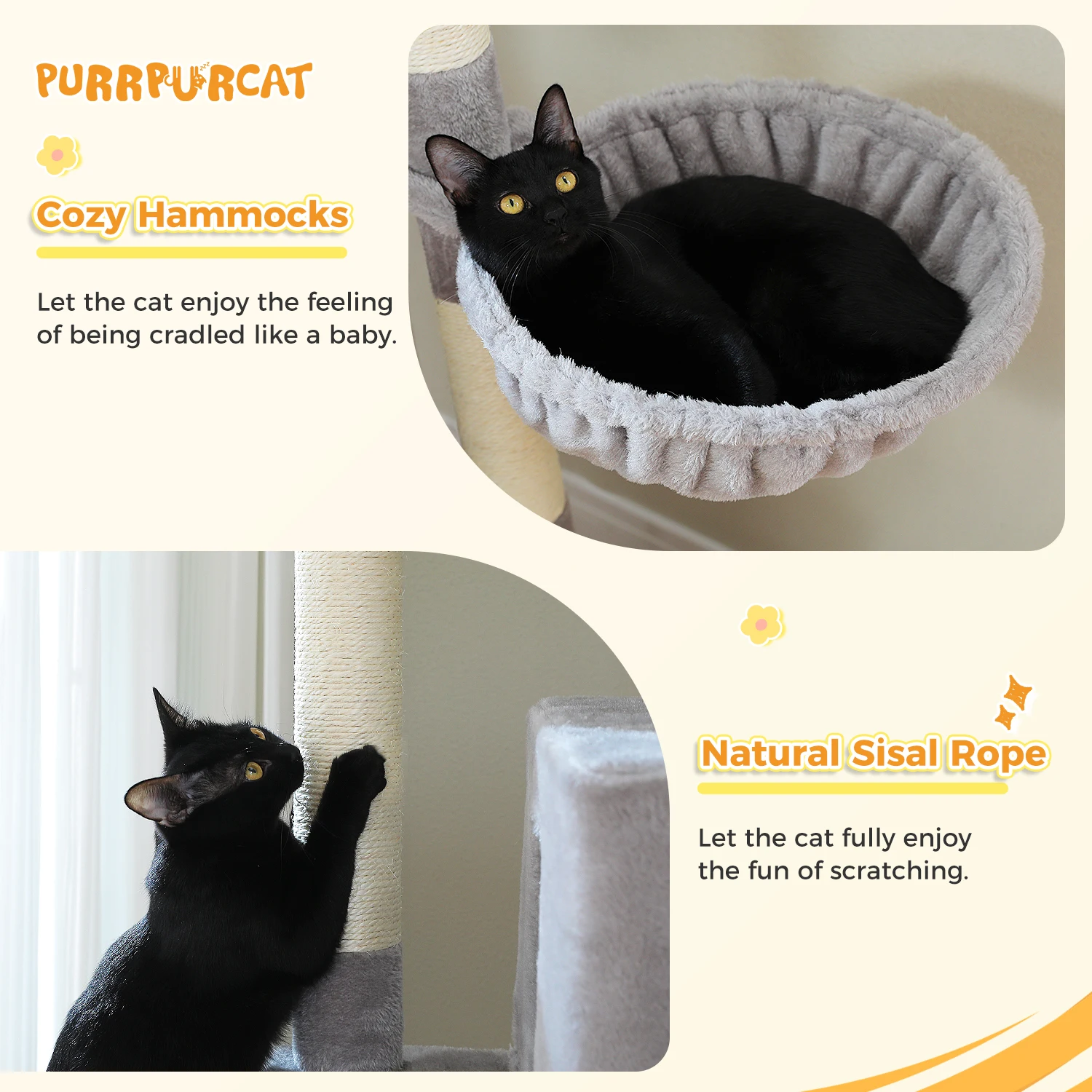 Dual Comfort Zones (2 Big Perches + Cozy Hammocks) – Offers diverse lounging options: cats can curl up on the spacious perches to sunbathe or relax in the soft hammocks, meeting their need for comfortable resting spots.