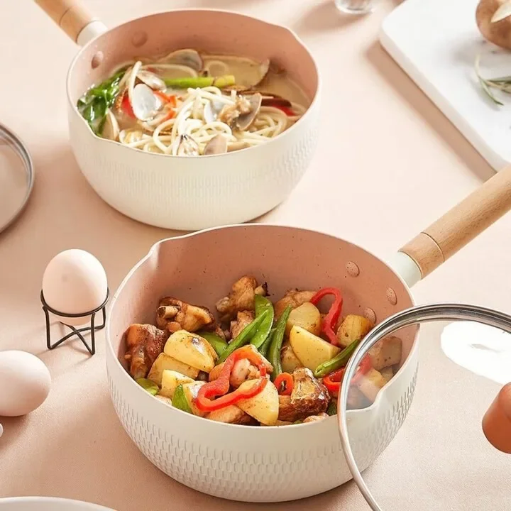 1pc Blue/Green/White Non Stick Pan Milk Pot Baby Food Pot Snow Pan Frying And Boiling Integrated Induction Cooker Gas Universal