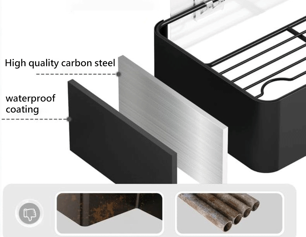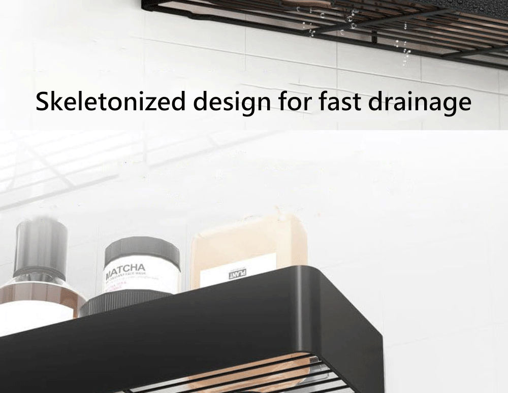 2 Packs Black Shower Storage Rack Wall Mount Bathroom Organizer Shelf With Hooks Kitchen Decoration Shelves On Wall