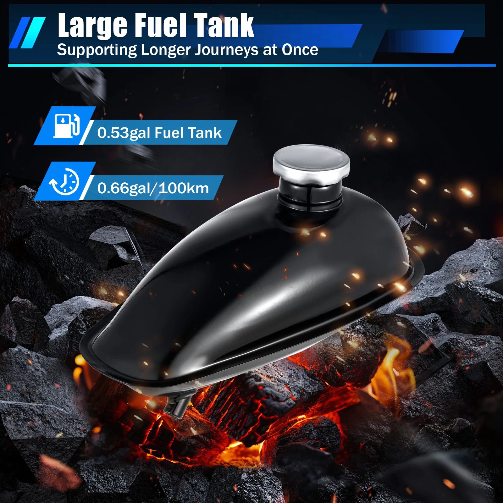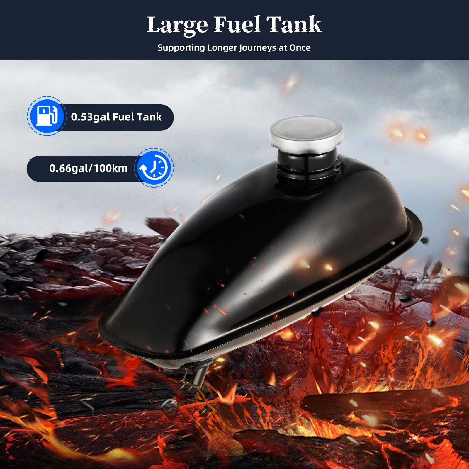 Large Fuel Tank: A fuel tank with a capacity of up to 0.53gal supports longer journeys at once, and fuel consumption of around 0.66gal/100 km also reduces the hassle of frequent refueling.