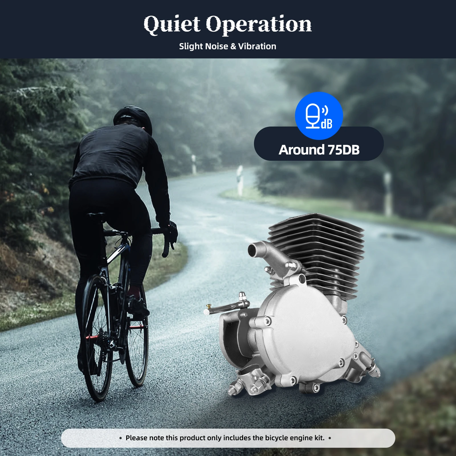 Quiet Operation: When in use, this bicycle engine kit only has slight noise (around 75DB) and vibration. You can use it in most outdoor environments without worrying about noise disturbance.