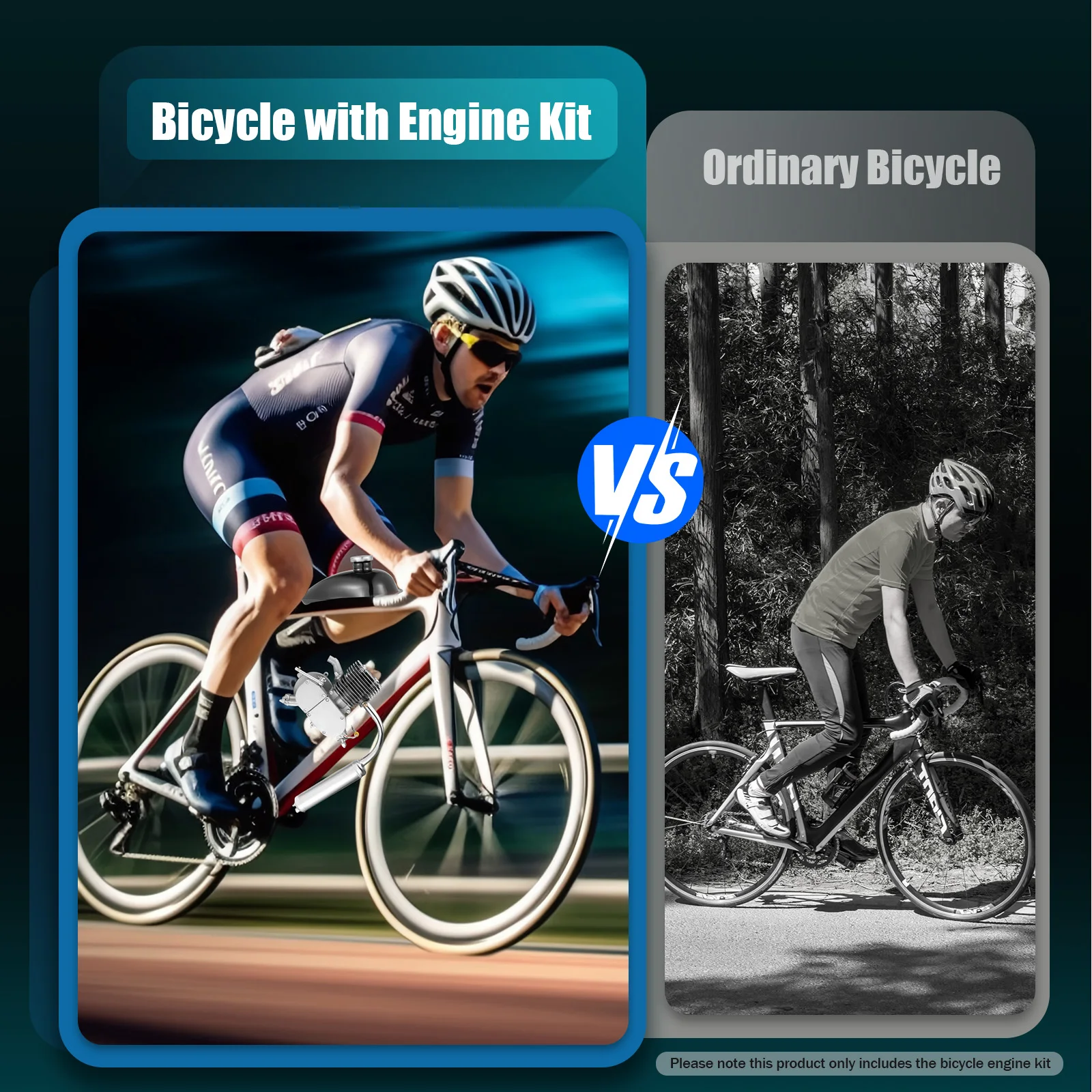 Economically Friendly: You can enjoy the speed and passion comparable to motorcycles at a lower price! This bicycle engine kit is more suitable for people with lower budgets or only short-term needs for motorcycles.