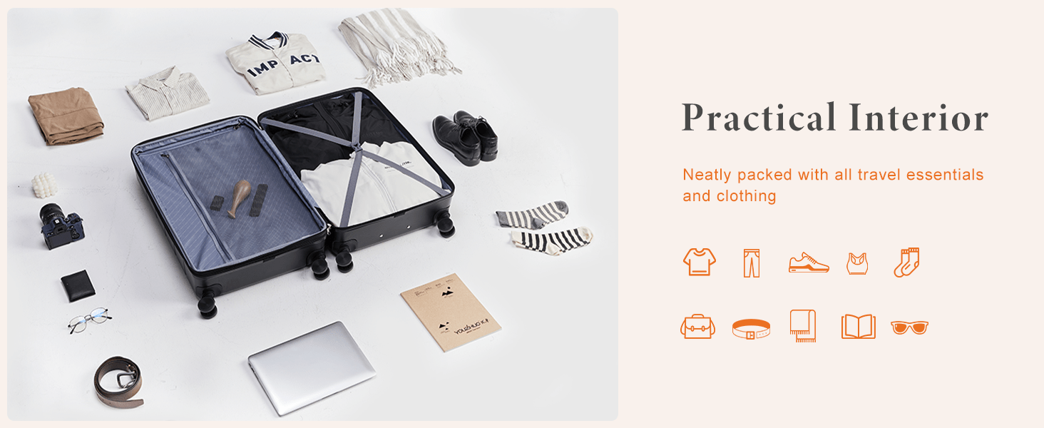 20/24/28 Inch Lightweight Hard Shell ABS Carry On Luggage with Double Spinner Wheels, Expandable Rolling Luggage and TSA Lock