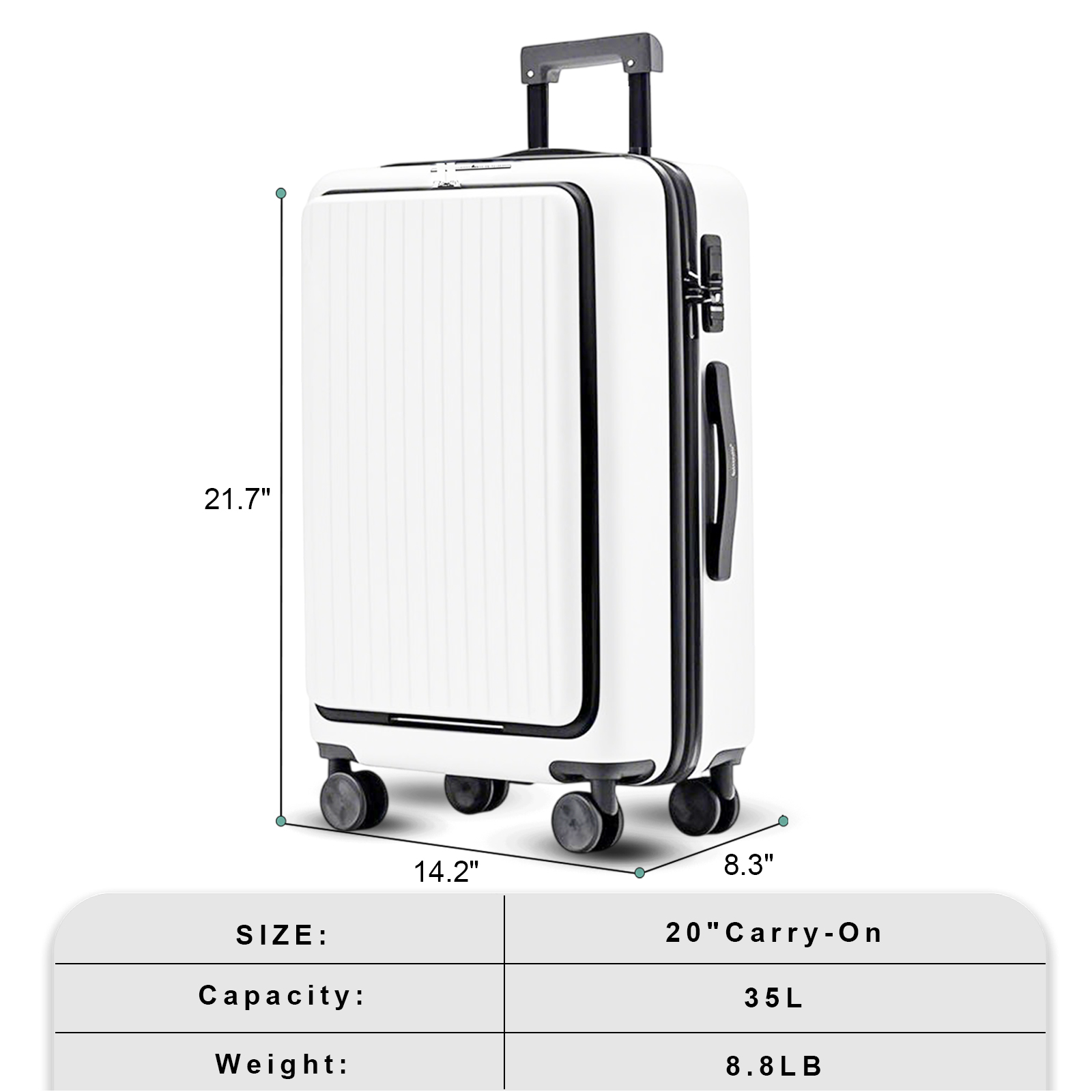 20 Inch Cabin Suitcase Front Opening Spinner Wheel Travel Rolling Luggage For Men Women Trolley Case With TSA Lock USB Charging