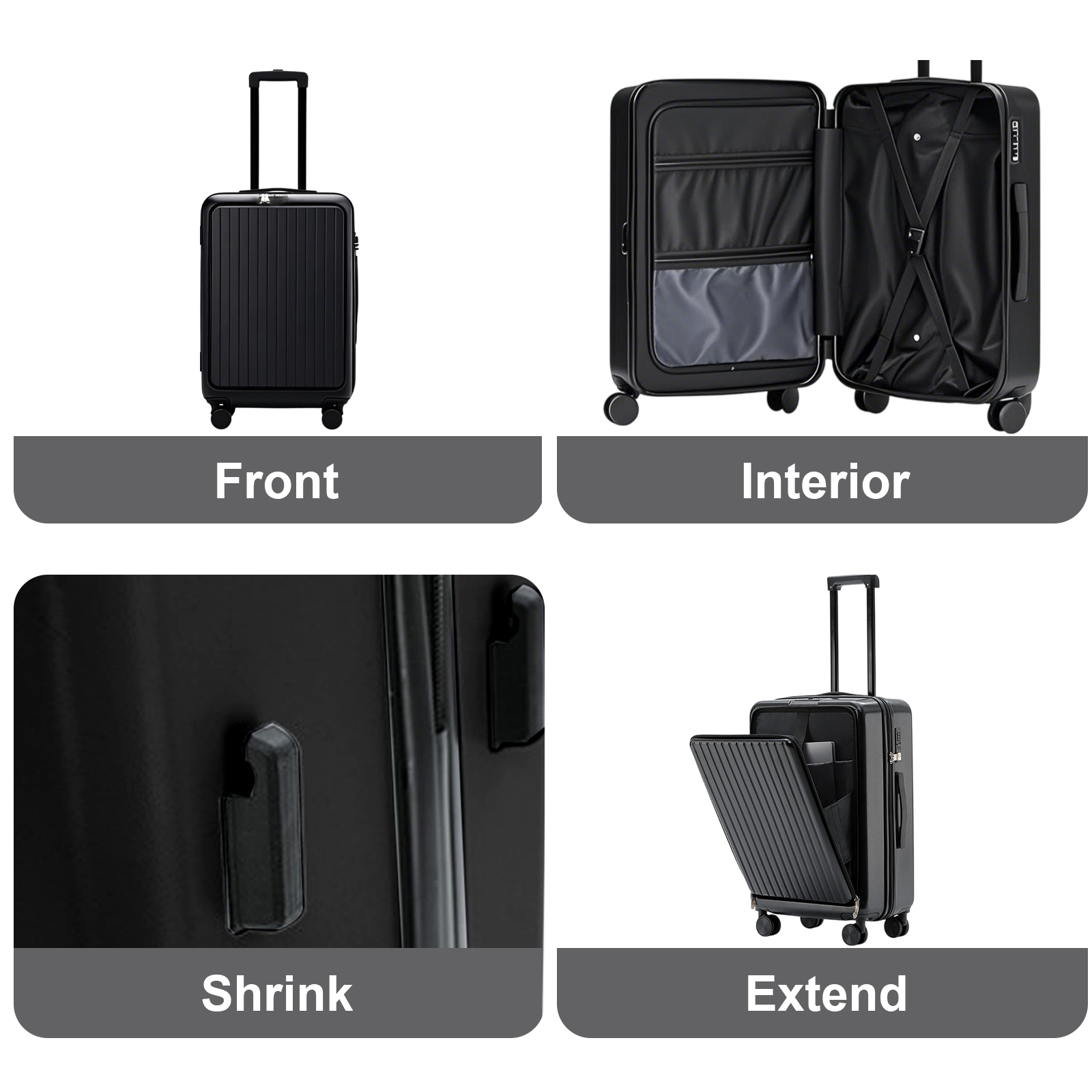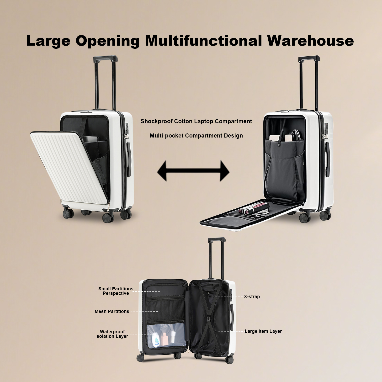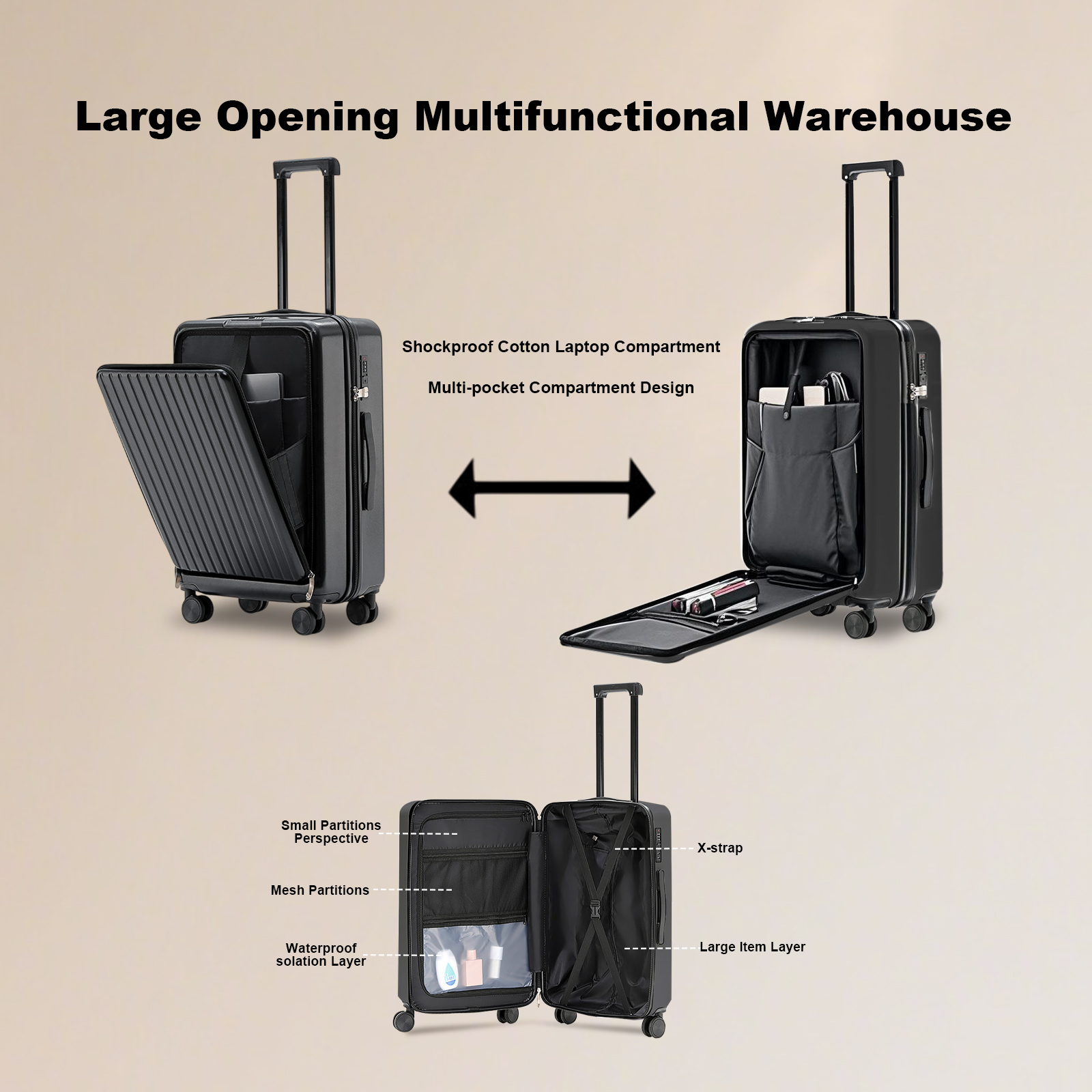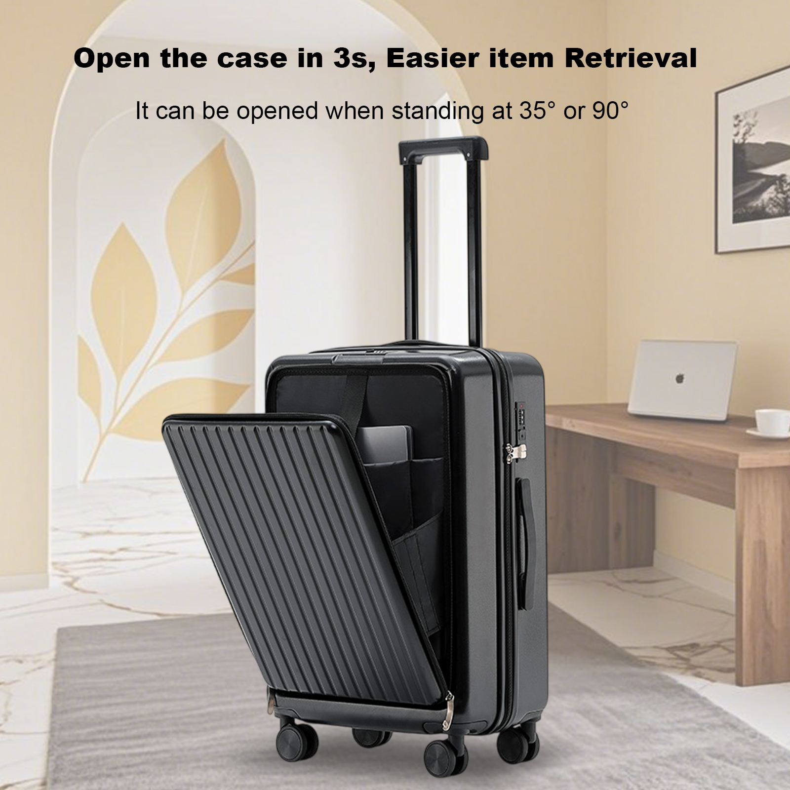 Front opening design: Quick access to internal items without fully opening the suitcase, which is convenient and fast, suitable for frequent access during the trip.