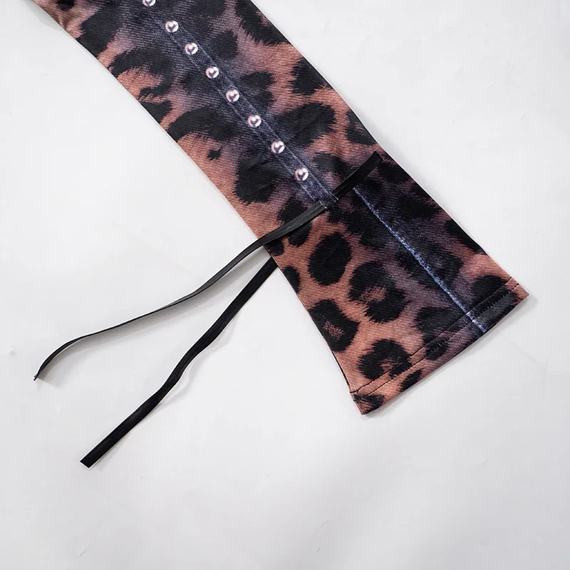 2025 Autumn And Winter New Women'S Fashion Leopard Print Slim Flared Long-Sleeved Package Hip Short Skirt Dresses Y2K