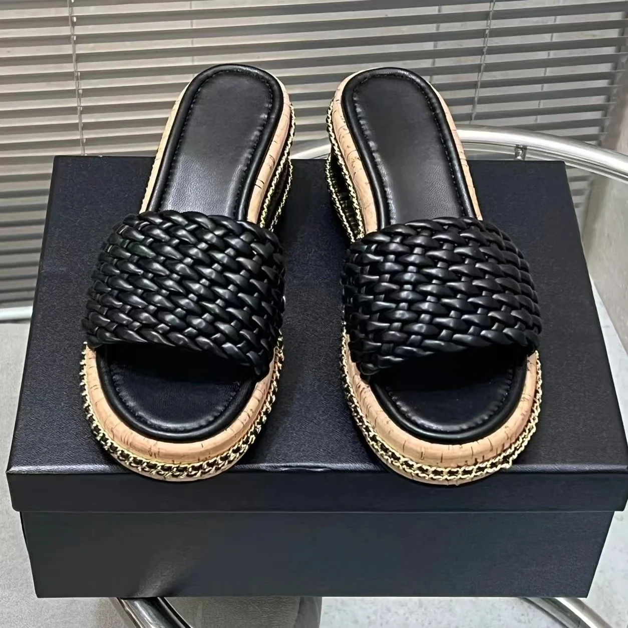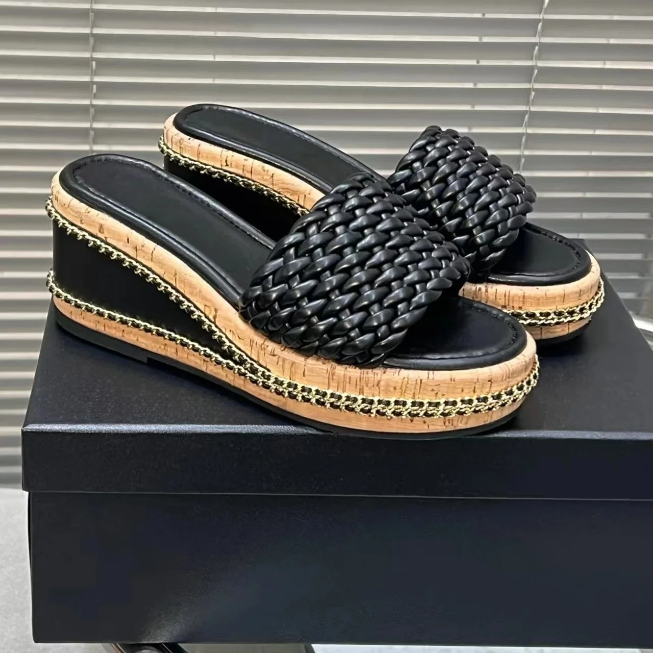 2025 New Arrival Handmade Genuine Leather Open-Toe Wedges Woman Slippers Weave Beach Slides Platform Elevator Shoes Botas Mujer