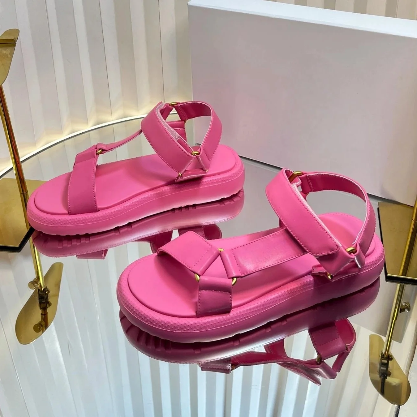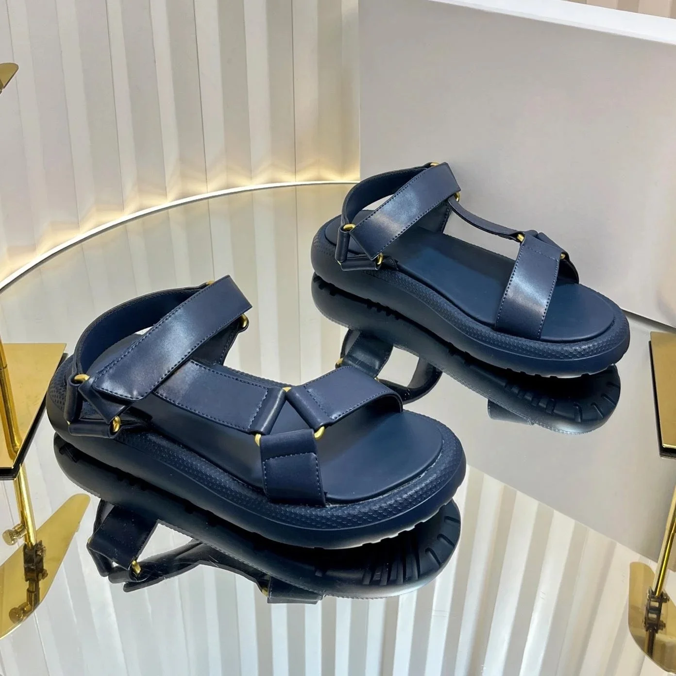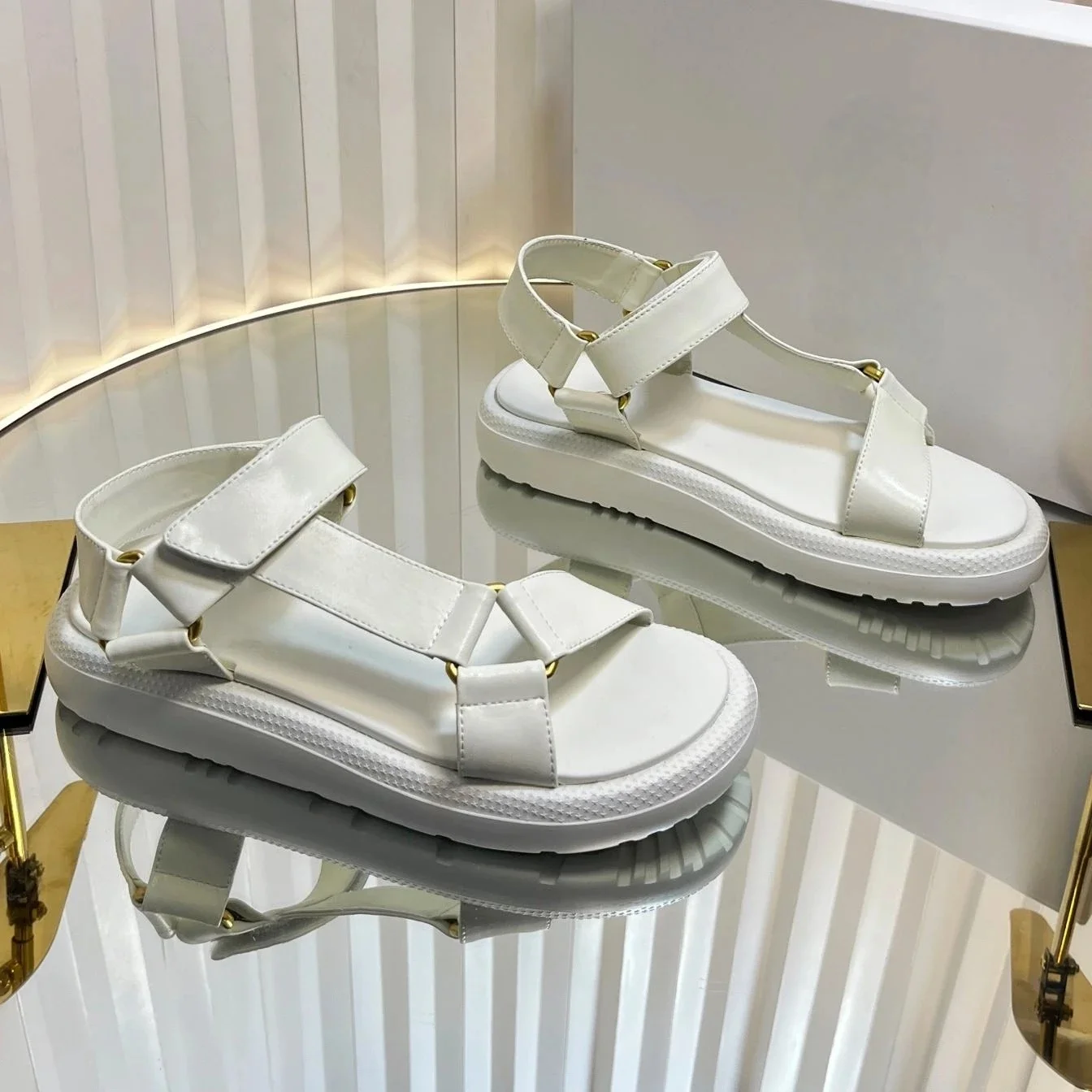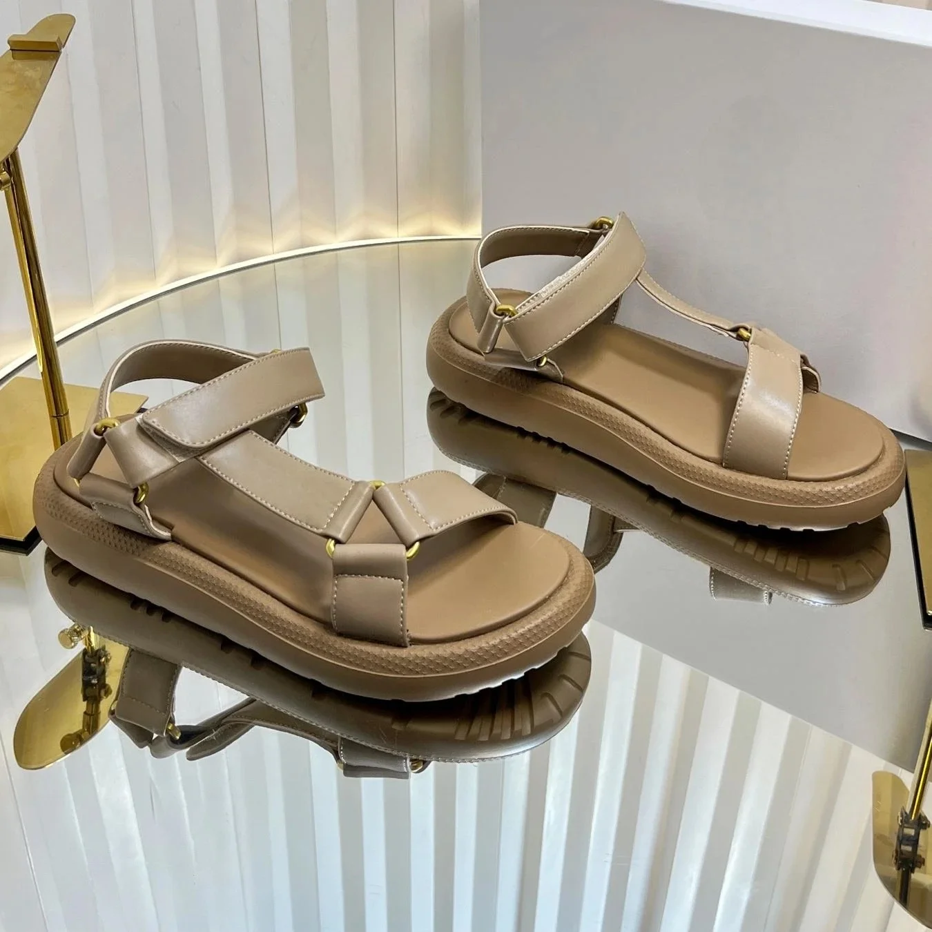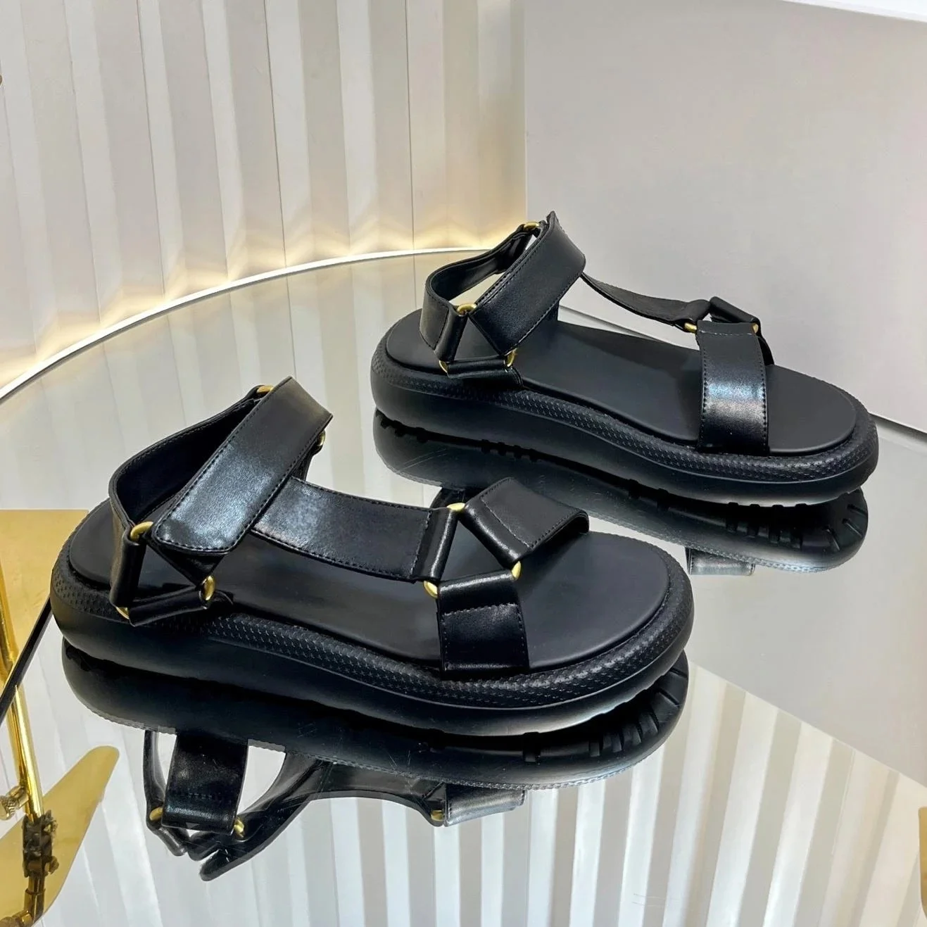 2025 New Arrival Summer Genuine Leather Open-Toe Thick Sole Woman Gladiator Sandals Magic Tape Beach Shoes Handmade Botas Mujer