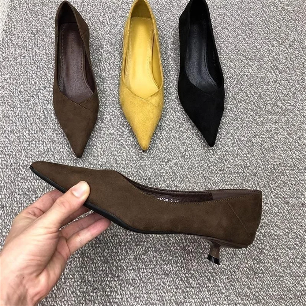 2025 New Comfortable Low 3-5 cm Heels Women's Working Shoes Leather Shallow French Style Thin Heeled Pumps For Office Casual