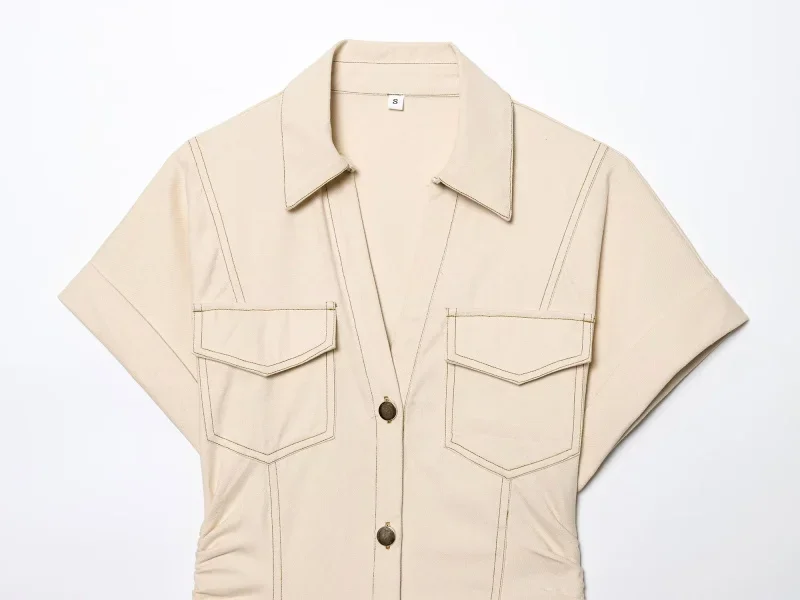 2025 traf Spring New 1975 series denim MIDI dress with lapel side zipper fashion wrinkle waist slim elegant dress