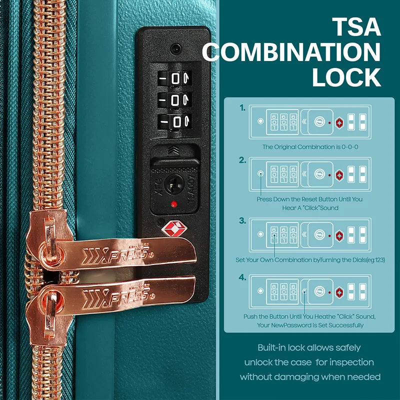 【TSA combination lock】The TSA lock allows only TSA agents to inspect your luggage during travel, ensuring that the lock remains undamaged while protecting your privacy and security.