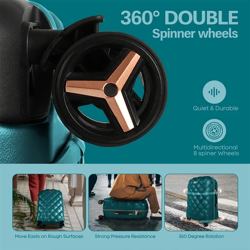 【Spinner wheels 】The four 360° spinner wheels feature precision axles and thick TPE treads. They roll smoothly and quietly, handle rough ground well, and are tough enough for heavy loads.