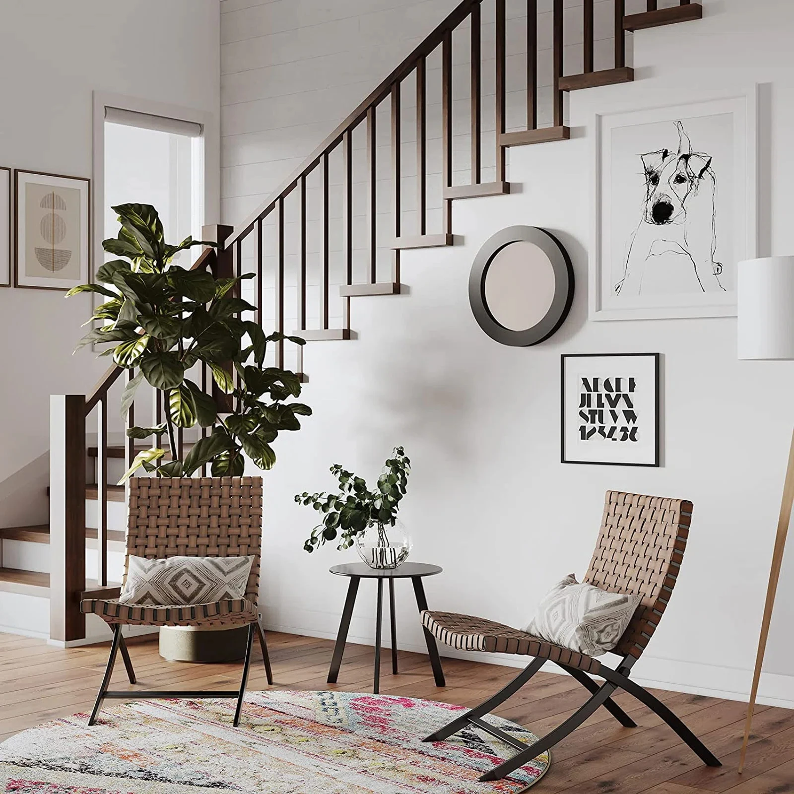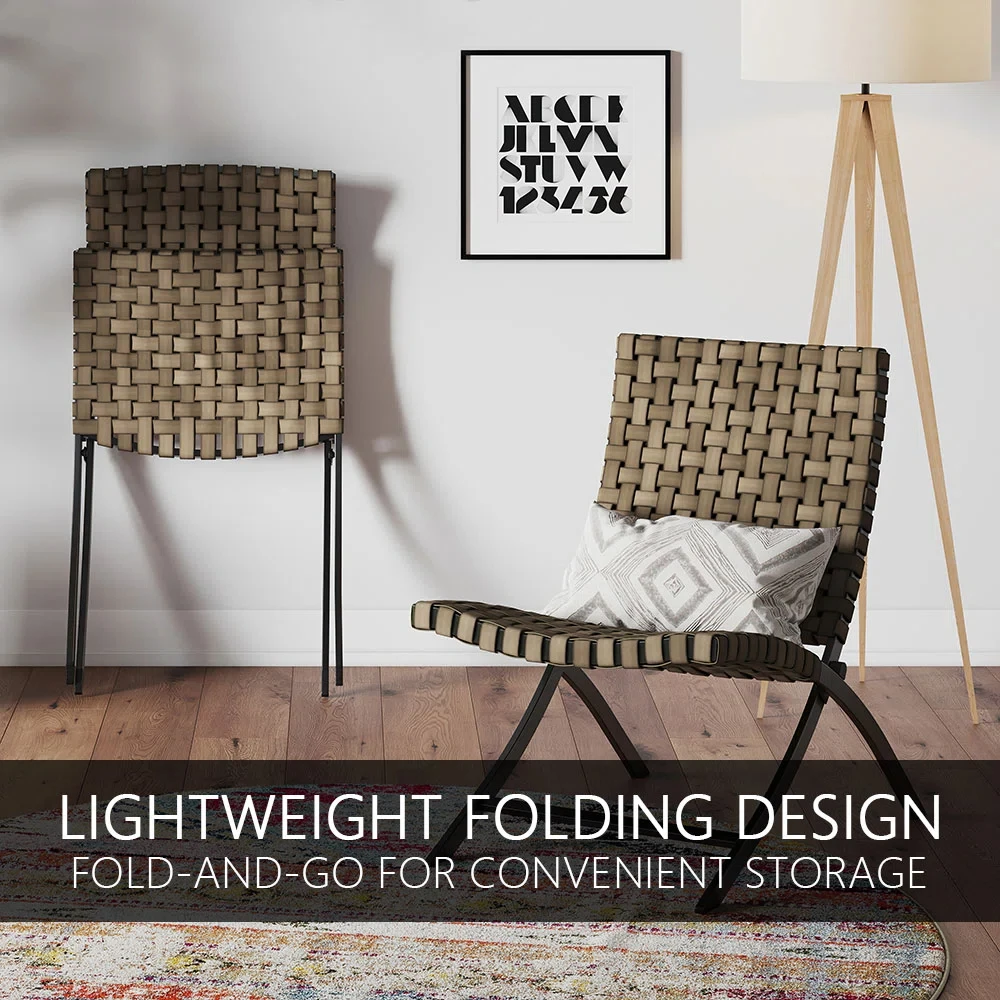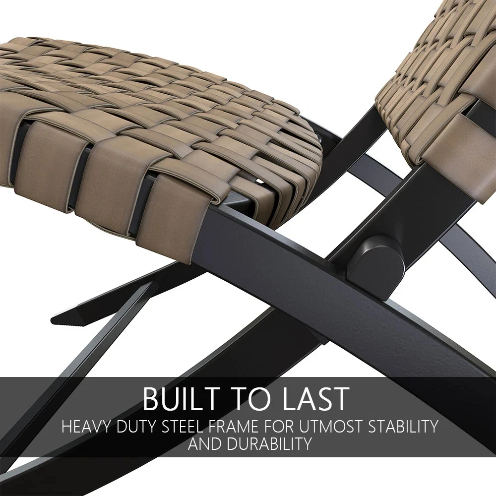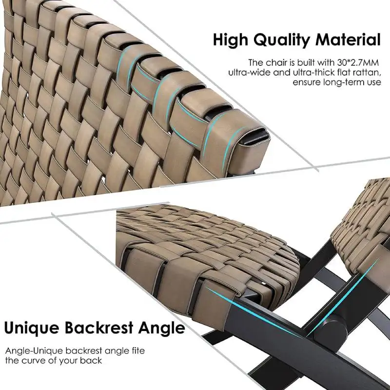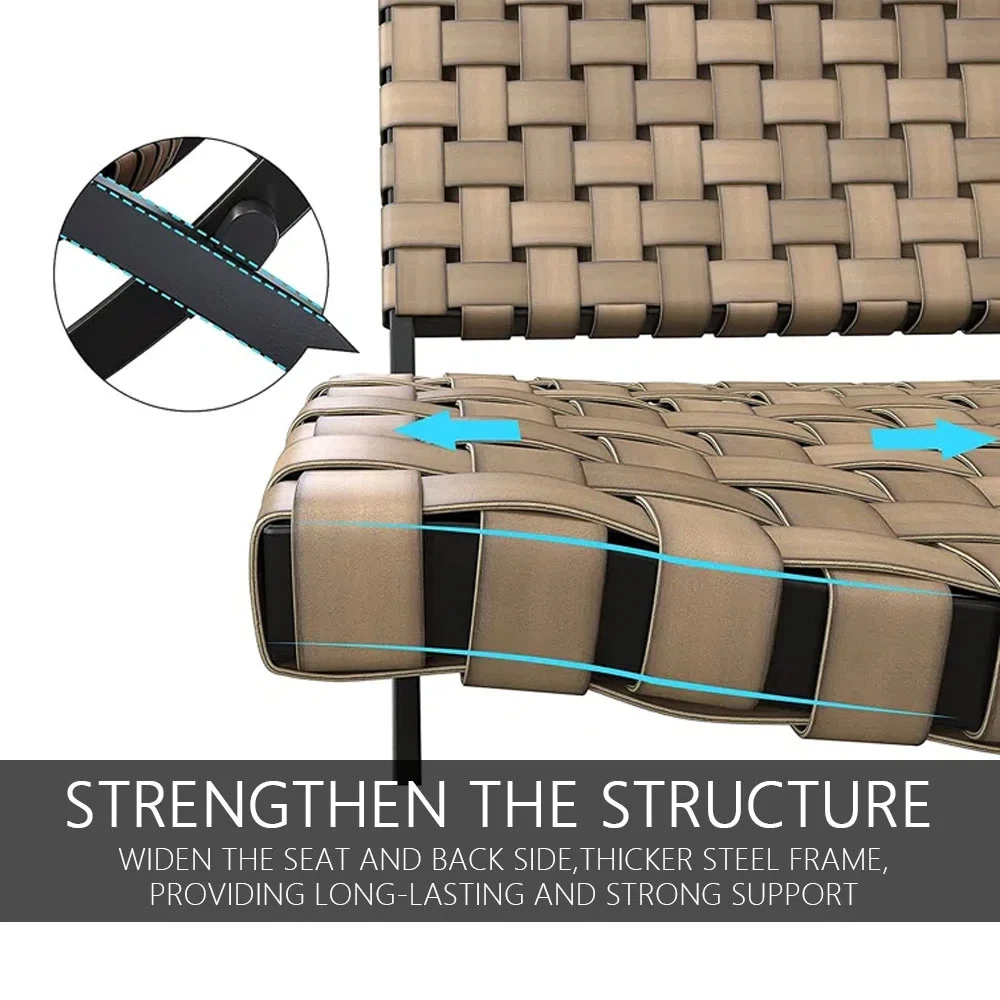3 Piece Leather Texture Wicker Patio Chairs, Foldable Balcony Furniture Set with Outdoor Lounge Seating and Side Table
