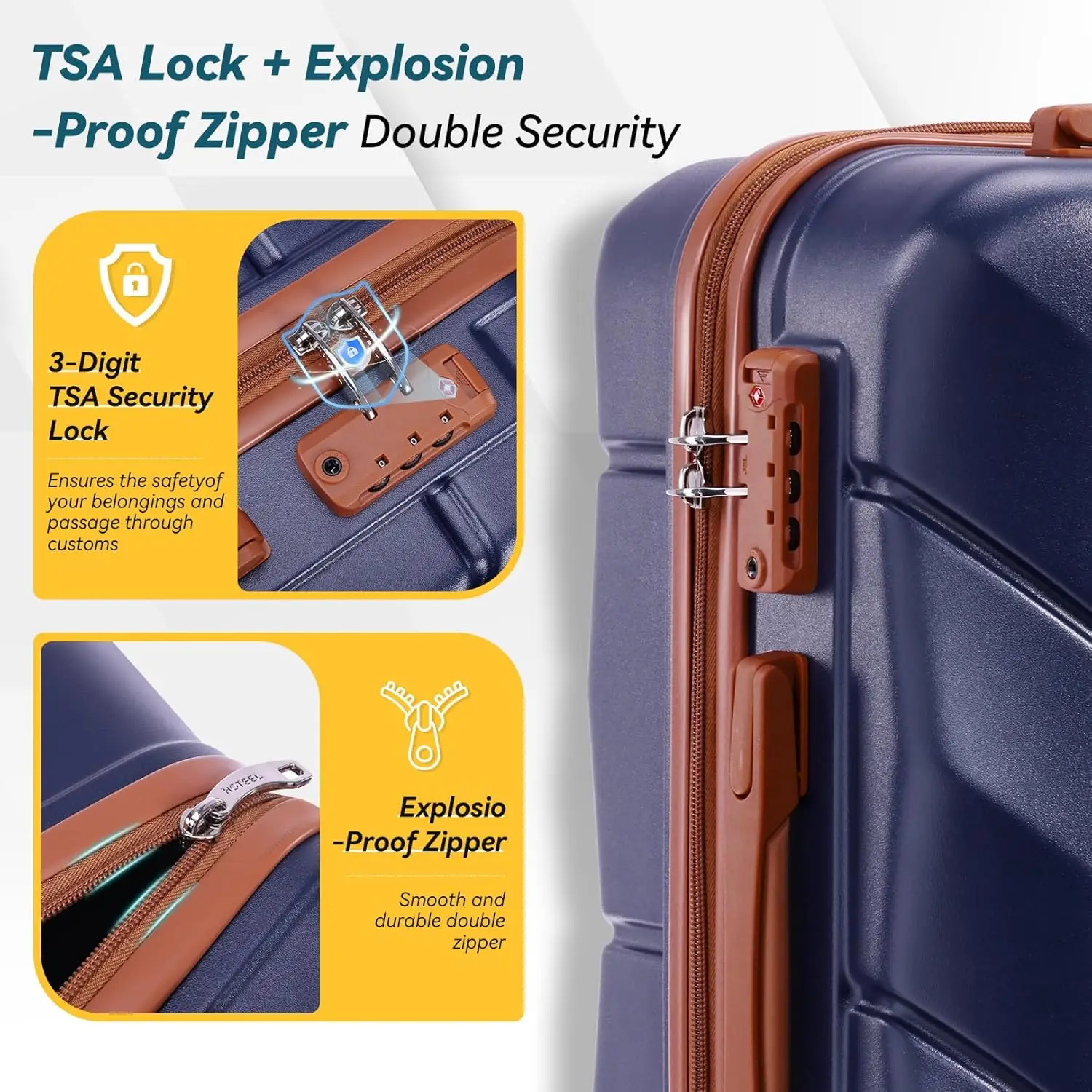 TSA Lock & Security Zippers: Luggage equipped with TSA-approved 3-digit combination lock ensures your belongings are secure while allowing TSA agents to inspect when necessary without damaging the lock. Luggage sets high-quality explosion-proof zippers provide lasting security and complete protection for your valuables, giving you peace of mind throughout your journey.