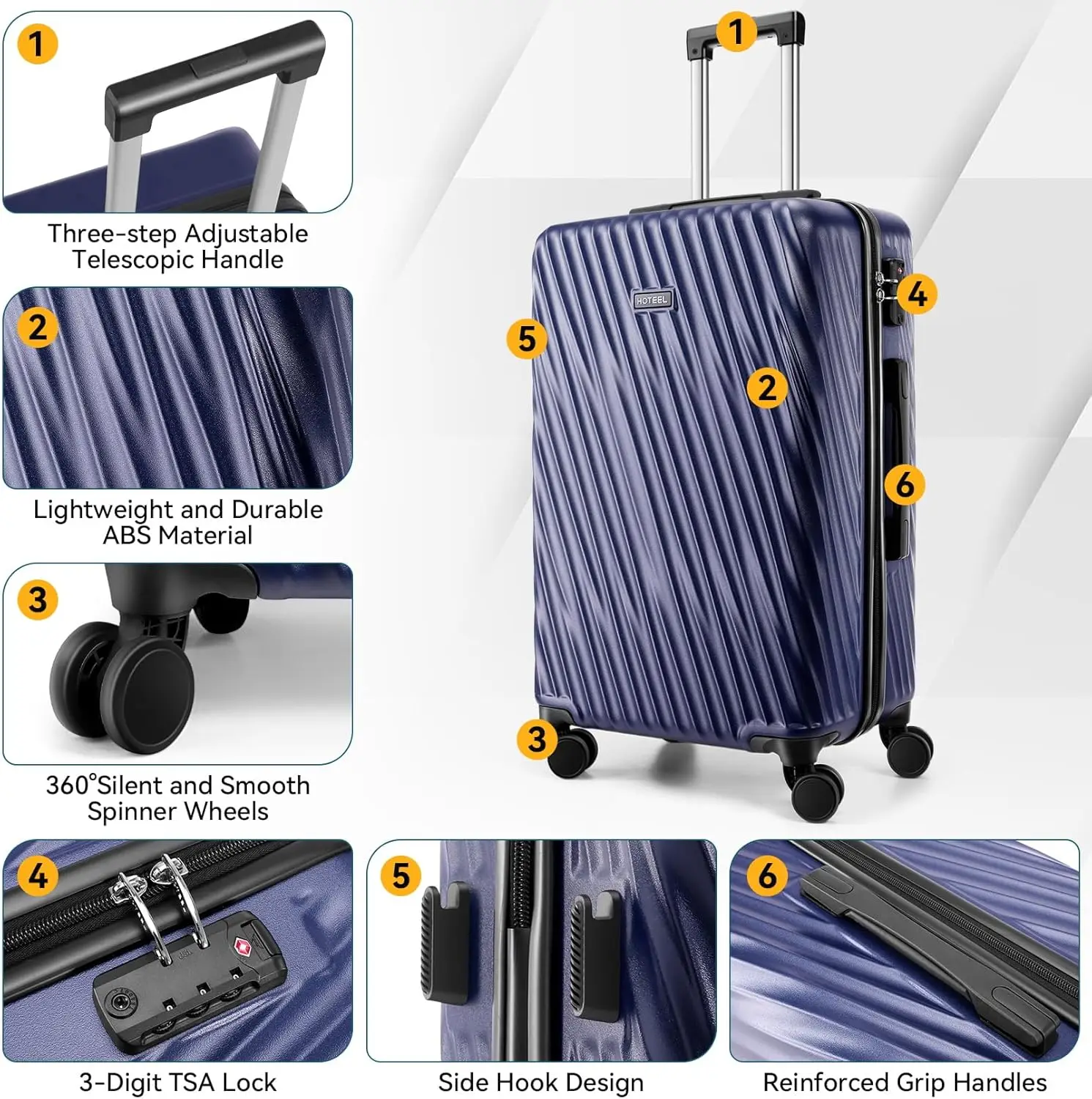 3 Piece Luggage Sets ABS Hardshell Suitcase With Spinner Wheels TSA Lock Travel Carry on Luggages For Women Men 20/24/28 Inch