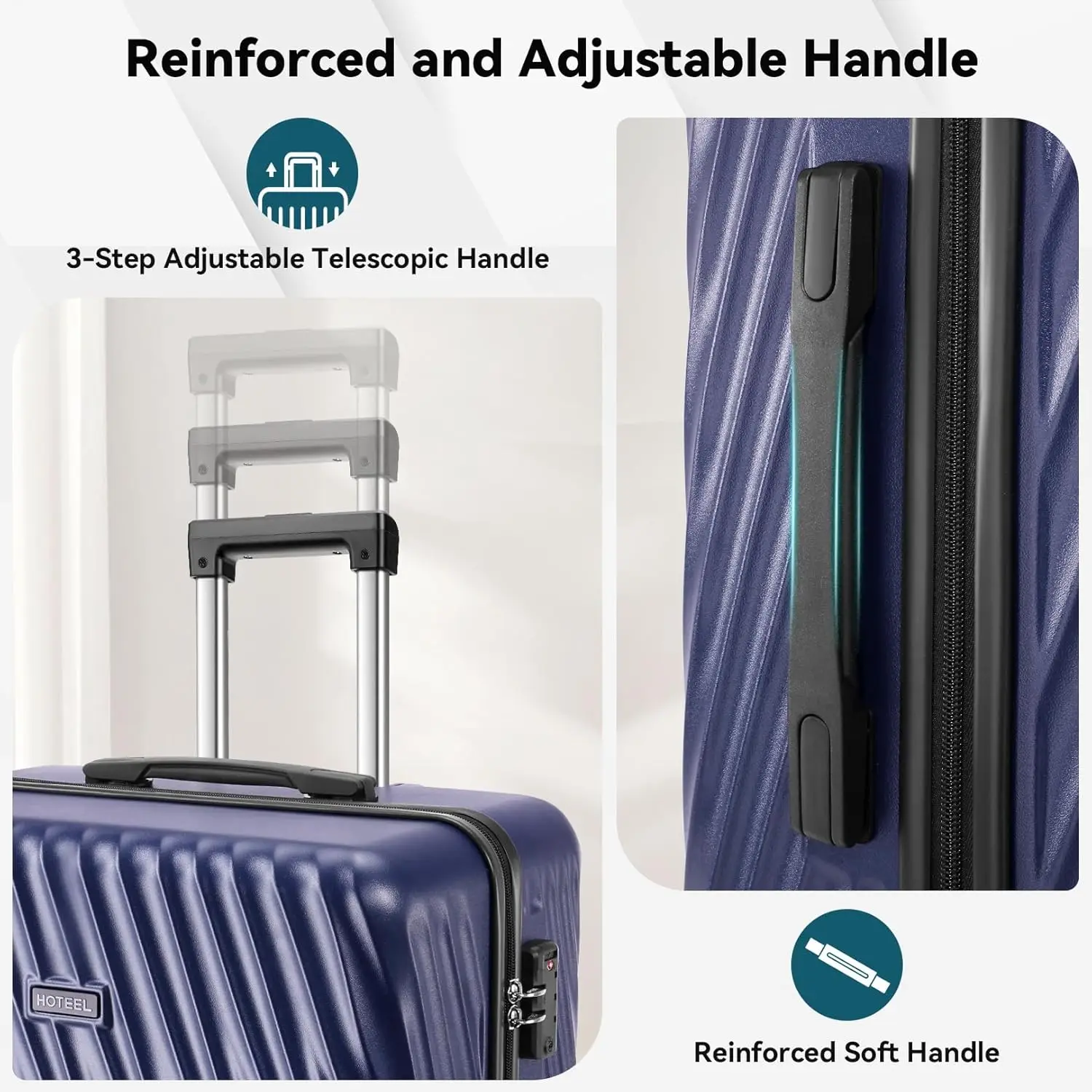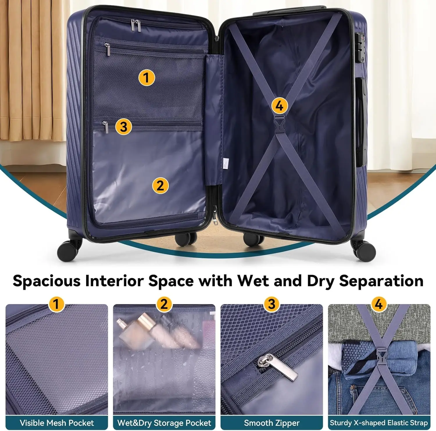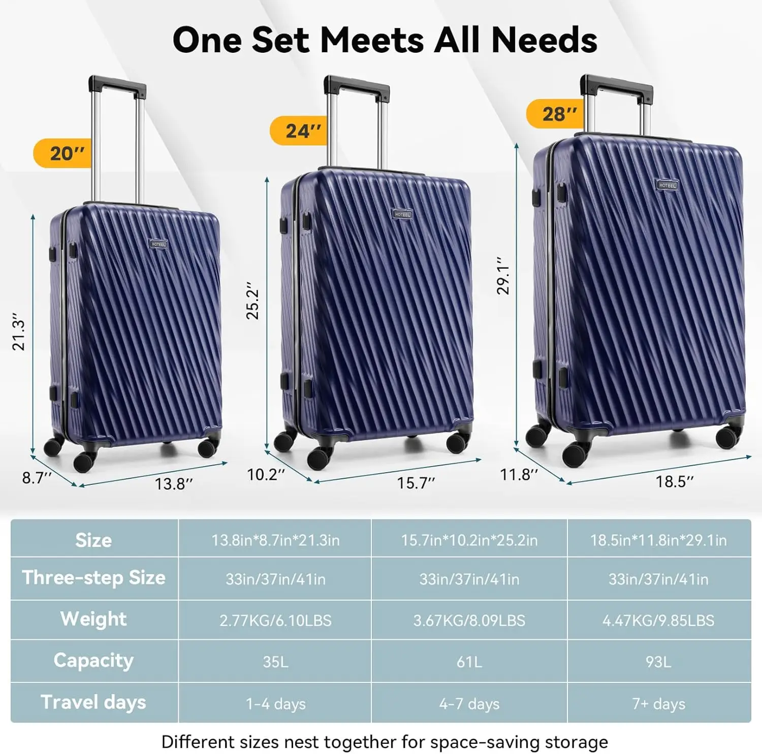 Durable & Lightweight: 3-piece luggage set features thickened ABS material, perfectly balancing durability and lightweight. Reinforced hardshell ensures superior impact protection, while scratch-resistant texture maintains appearance through countless trips. Luggage available in three sizes (20"/24"/28") for all your travel needs.
