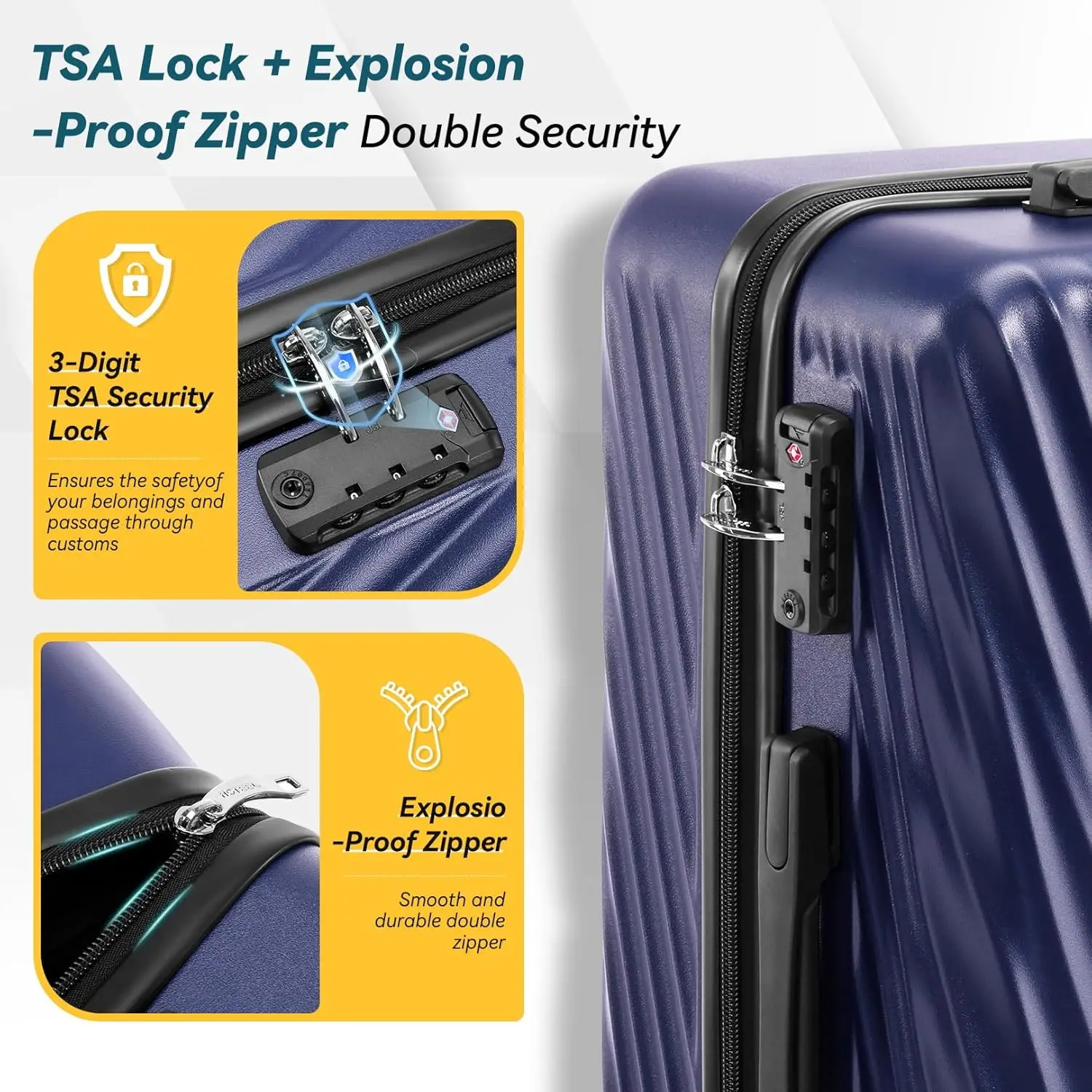 TSA Lock & Security Zippers: Luggage equipped with TSA-approved 3-digit combination lock ensures your belongings are secure while allowing TSA agents to inspect when necessary without damaging the lock. Luggage sets high-quality explosion-proof zippers provide lasting security and complete protection for your valuables, giving you peace of mind throughout your journey.