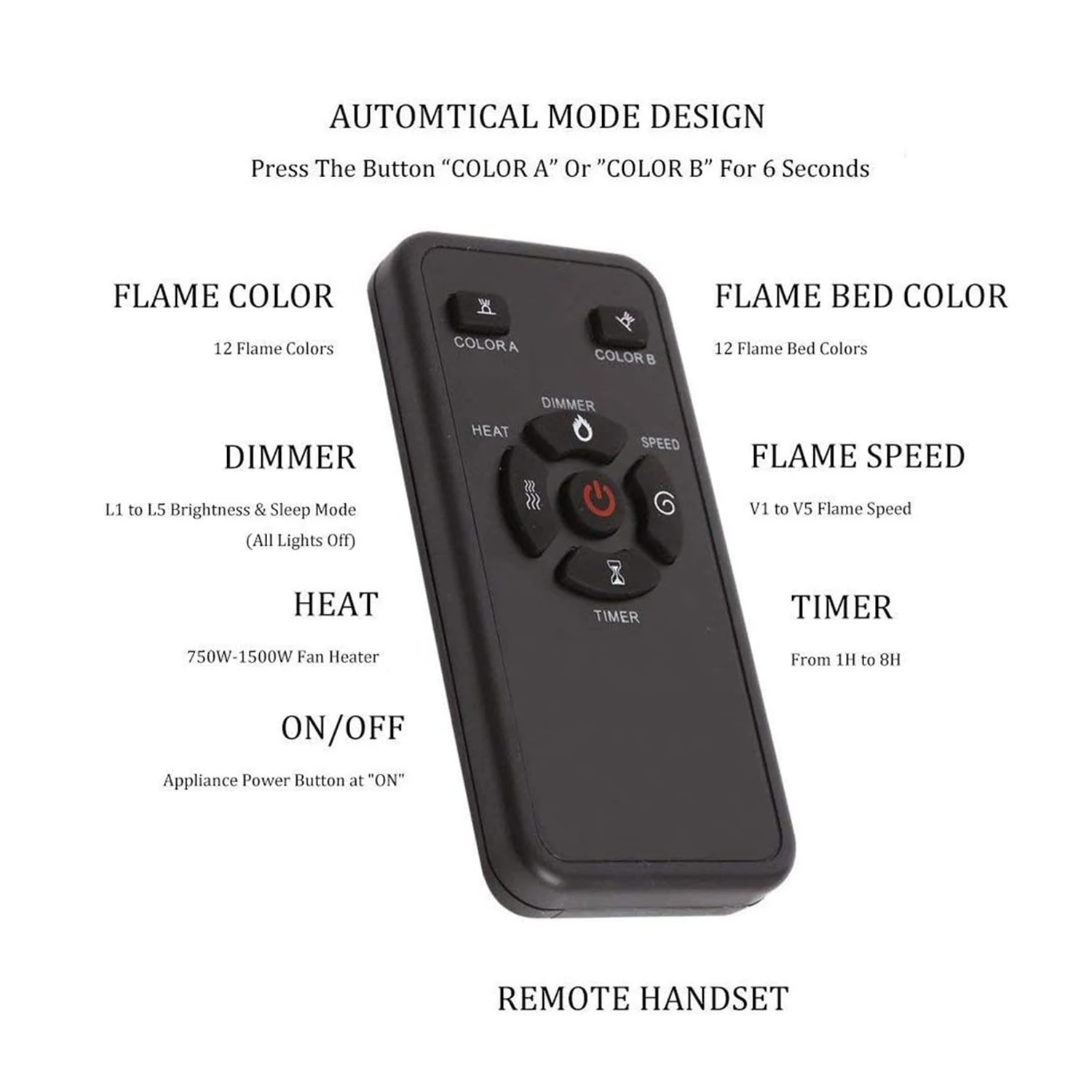 Multiple operating modes: touch screen and remote control; 12 flame and LED flame bed color modes; 5 flame speed mode; 5 flame purity levels; special automatic flame design (the flame color and brightness change.