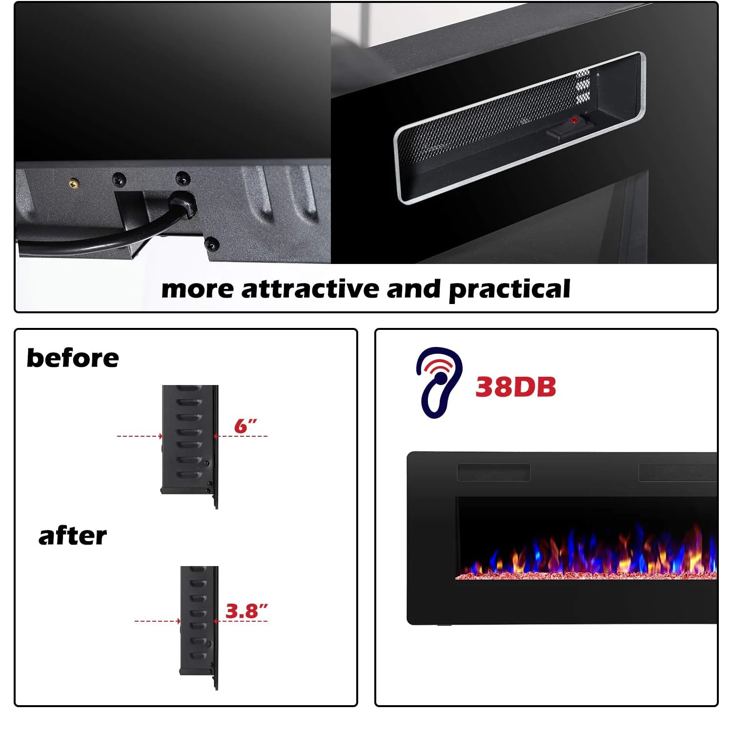 36inch Electric fireplace for wall mounting ultra thin low noise suitable for 2 x 4 and 2 x 6 bolts remote control with timer