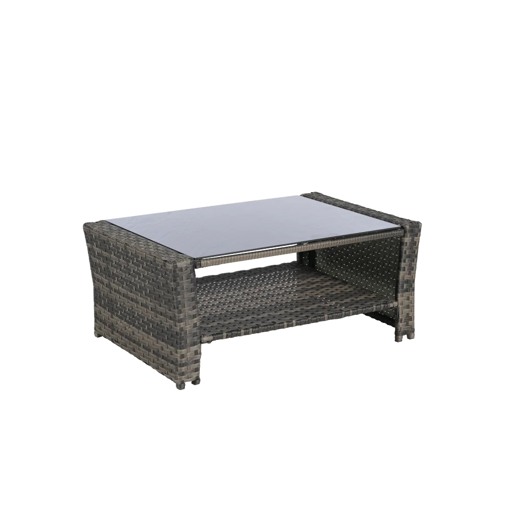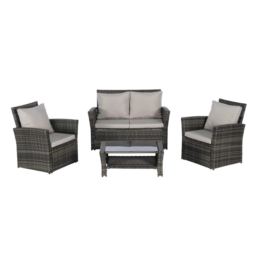 4 Pieces Outdoor Patio Furniture Sets Garden Rattan Chair Wicker Set, Poolside Lawn Chairs with Tempered Glass Coffee Table