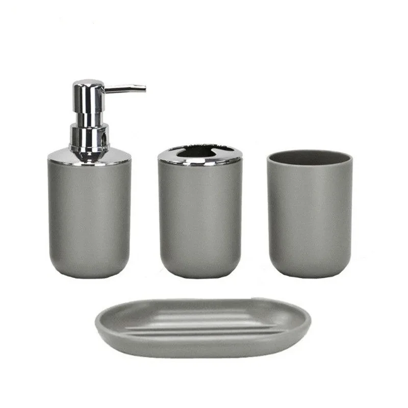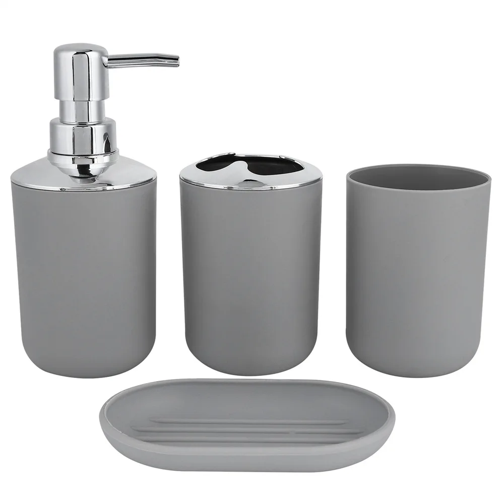 4pcs/Set Plastic Bathroom Set Toilet Brush Holder Toothbrush Glass Cup Soap Dispenser Soap Dish Bathroom Accessories