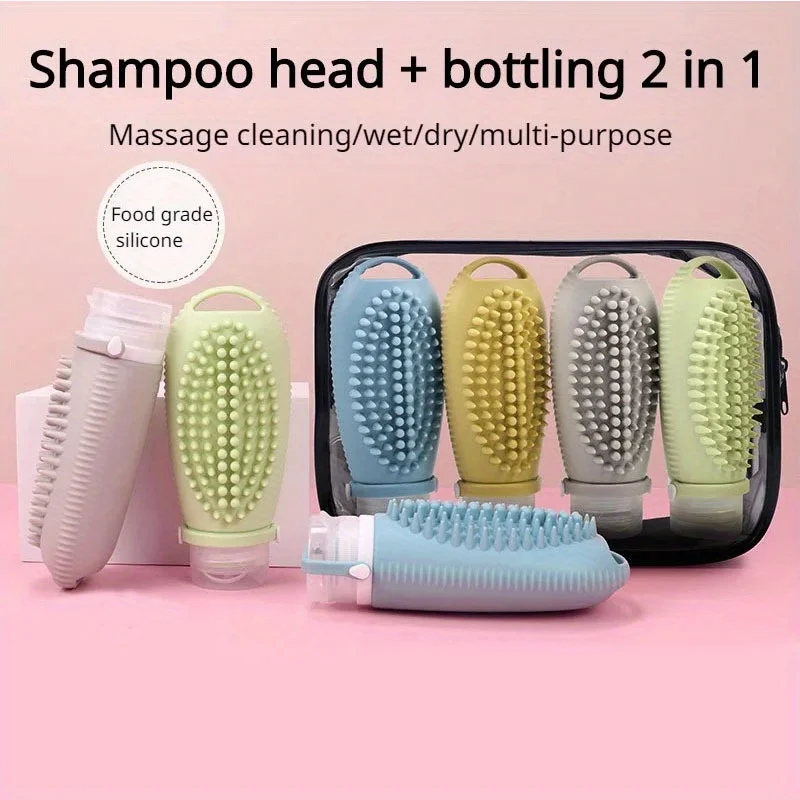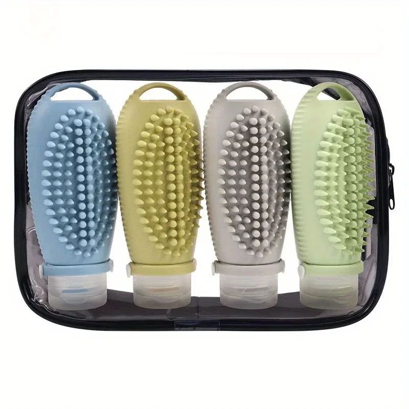 4Pcs Travel Separately Bottled Shampoo Cosmetics Lotion Separately Bottled Massage Separately Bottled with Brush