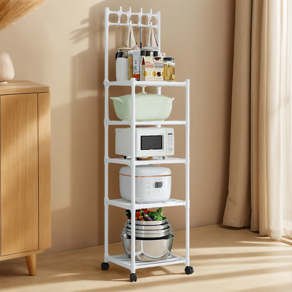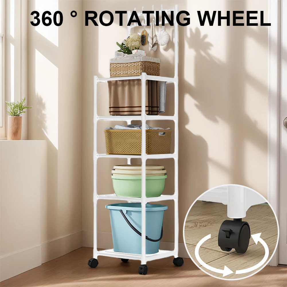 5 Tier Storage Shelves 110LBS Heavy Duty Shelving Unit with Rolling Wheels Storage Shelf Rack for Laundry Bathroom Kitchen Garage Pantry