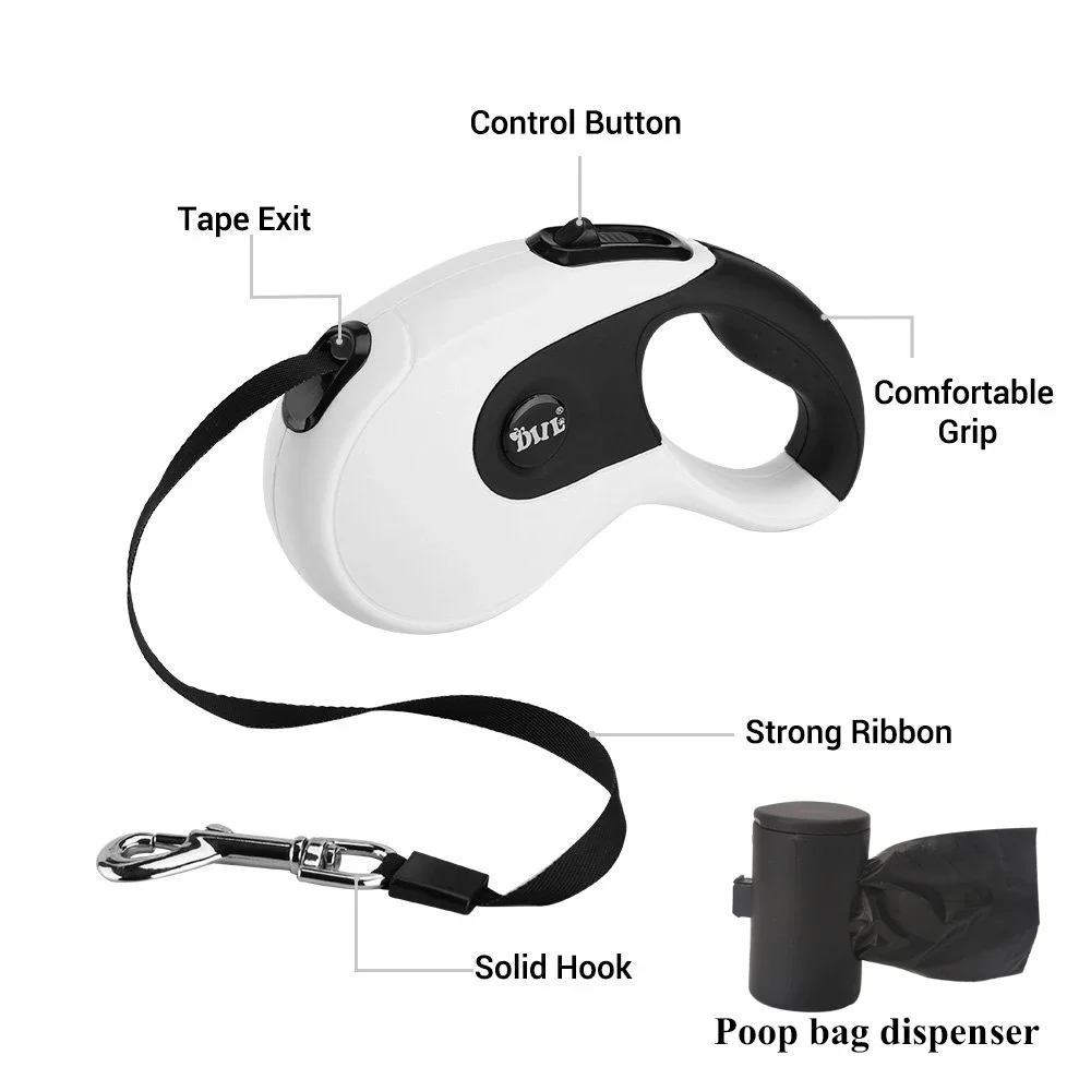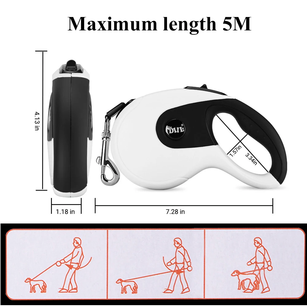 5M/8M Retractable Dog Leash Roulette Leashes with Poop Bag Dispenser Pet Lead Leash For Dogs Cats Collar Harness Dog Accessories