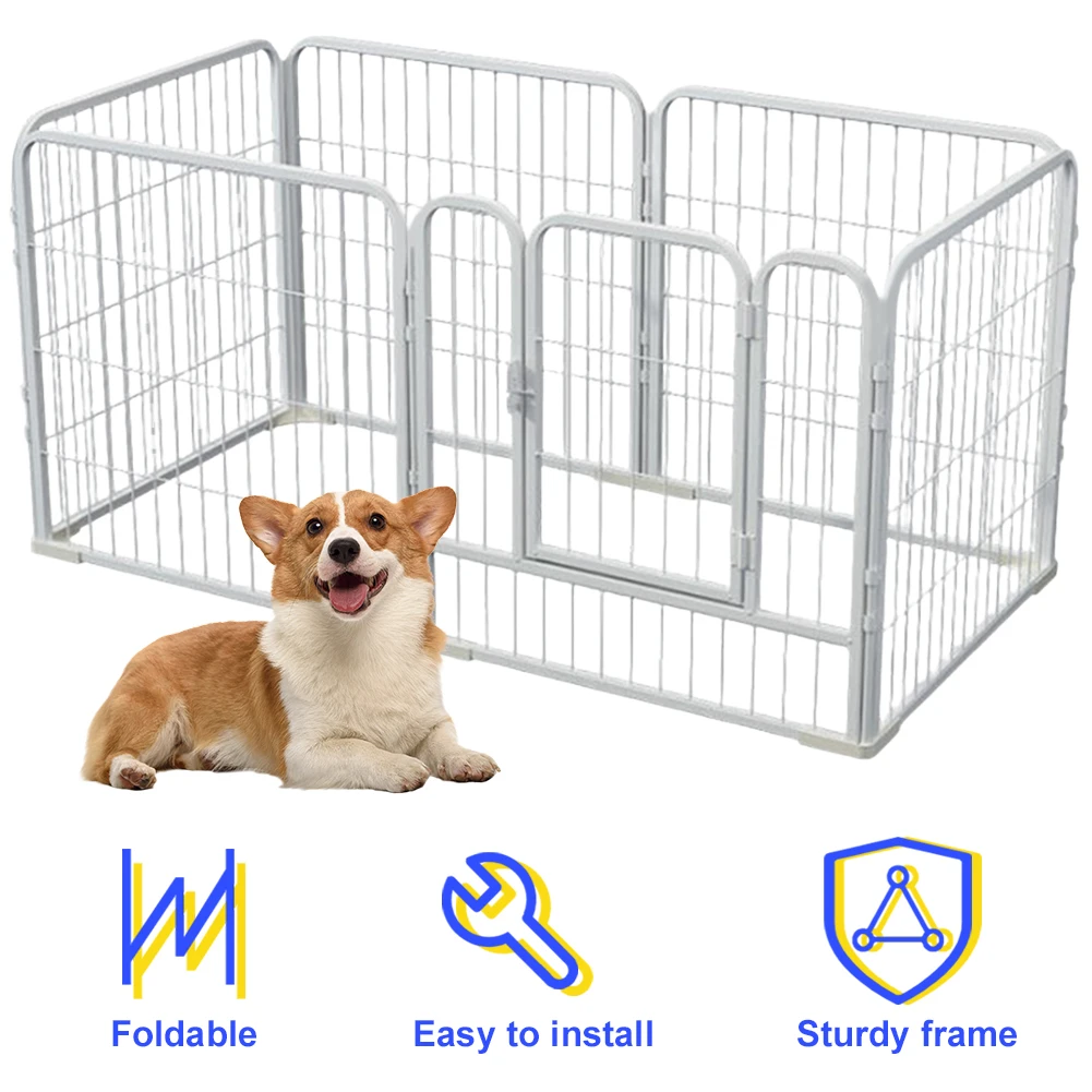 6 Panels Exercise Puppy Kennel Cage Foldable Metal Barrier Playpen Heavy Duty Dog Exercise Fence for Dog Cat Rabbit Pet Exercise