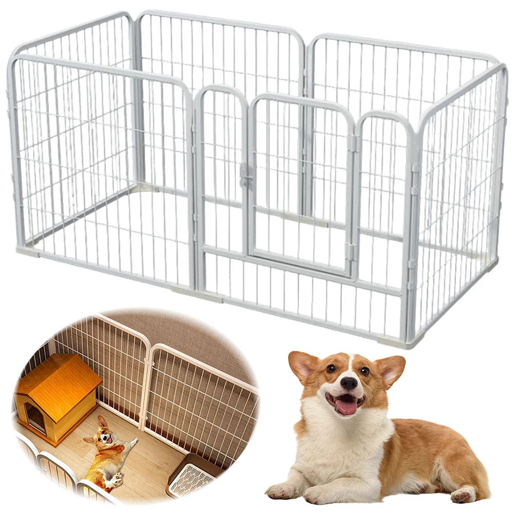 6 Panels Pet Playpen with Door Foldable Exercise Puppy Kennel Cage Heavy Duty Dog Exercise Fence for Dog Cat Rabbit Pet Exercise