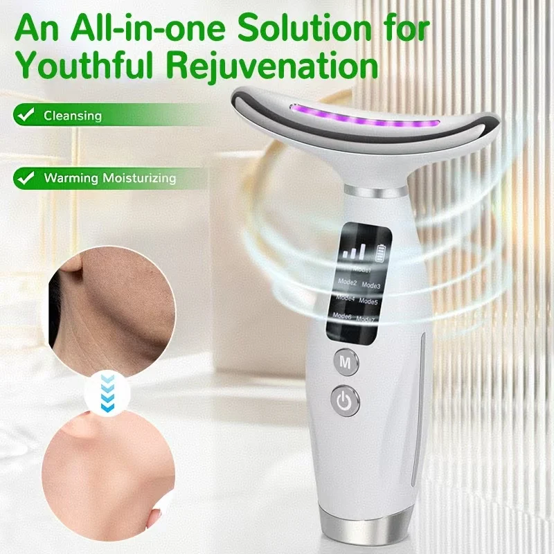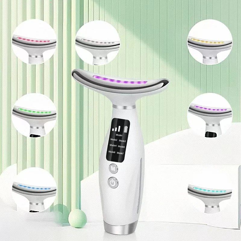 7-color LED facial massage device - USB rechargeable beauty instrument, multi-functional beauty tool, suitable for Christmas