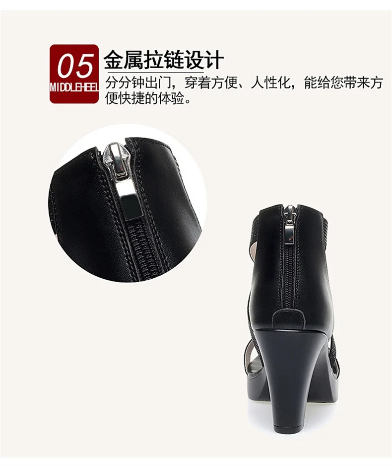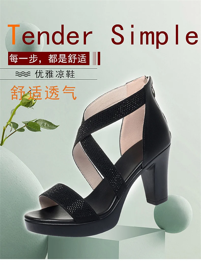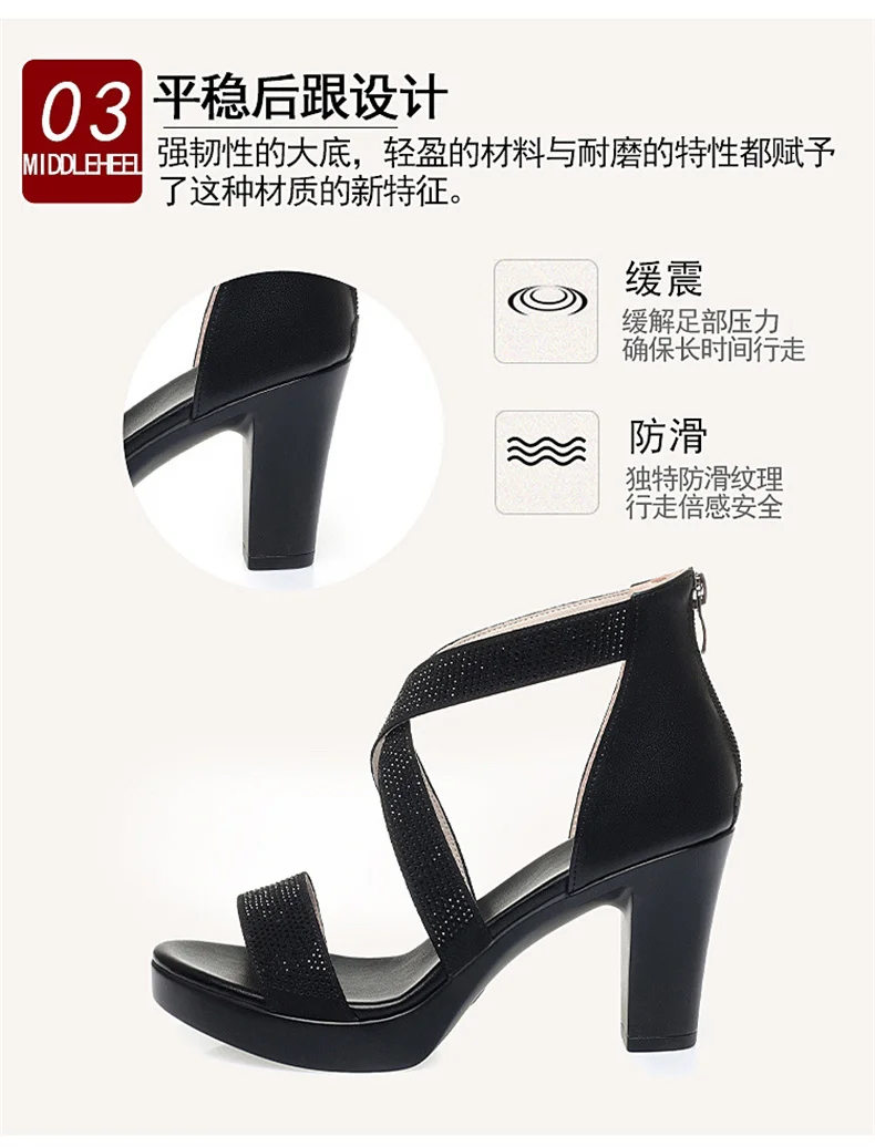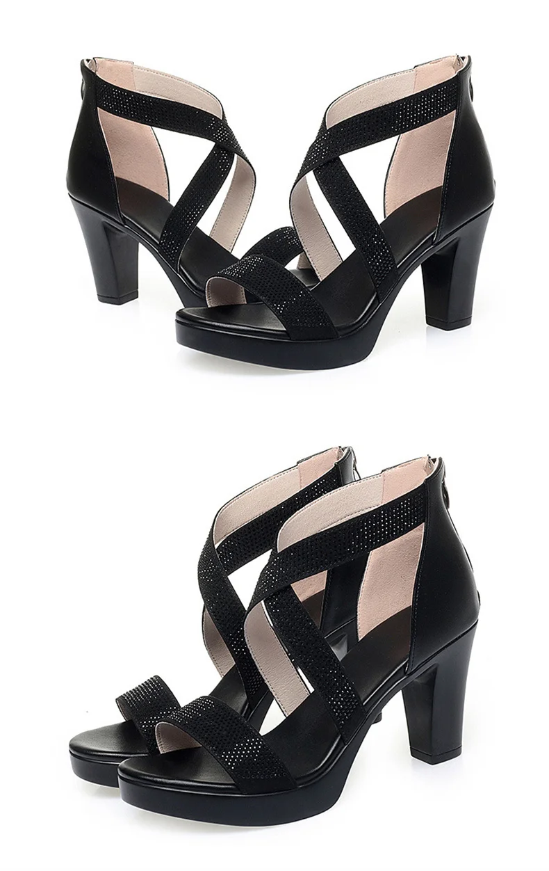 8 cm Woman High Summer Black Rhinestone Glitter Dress Shoes For Soft Leather Platform Wedge Heel Elegant Sandal Roman Style