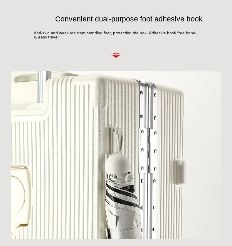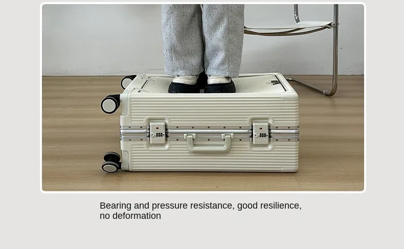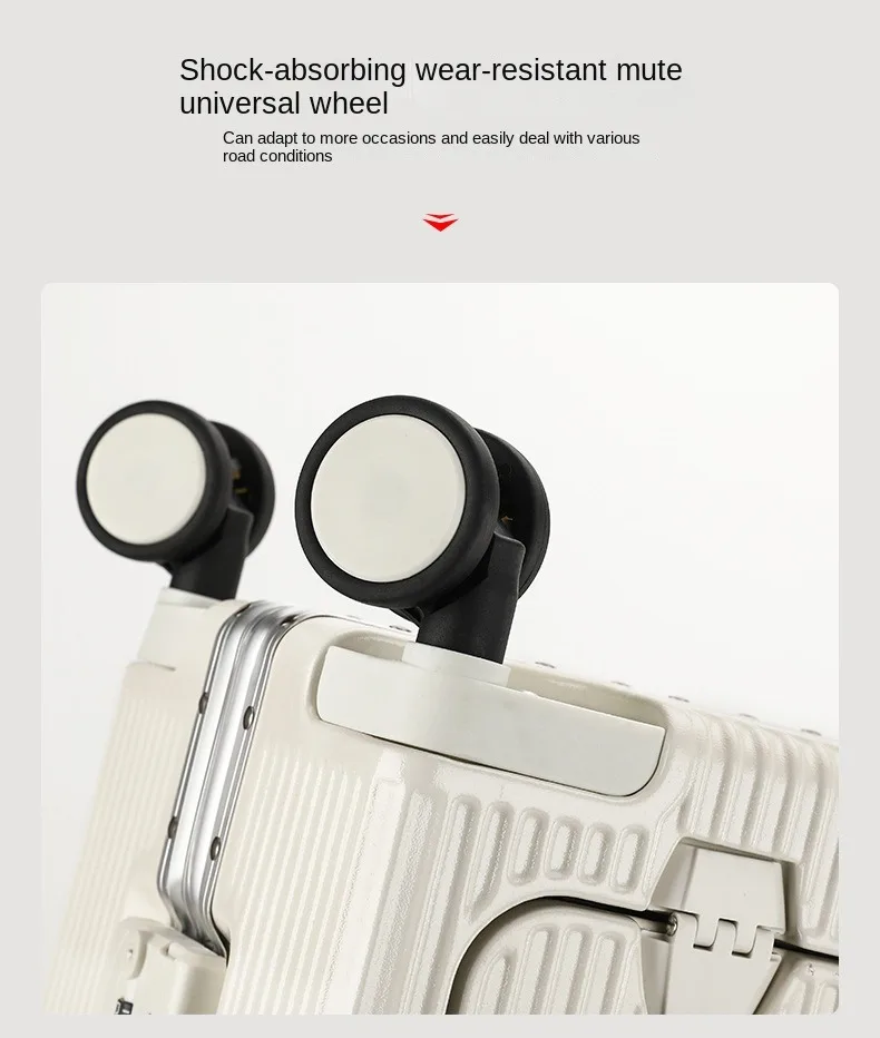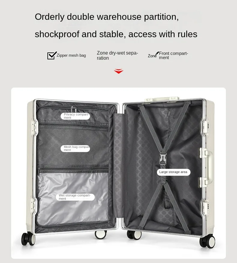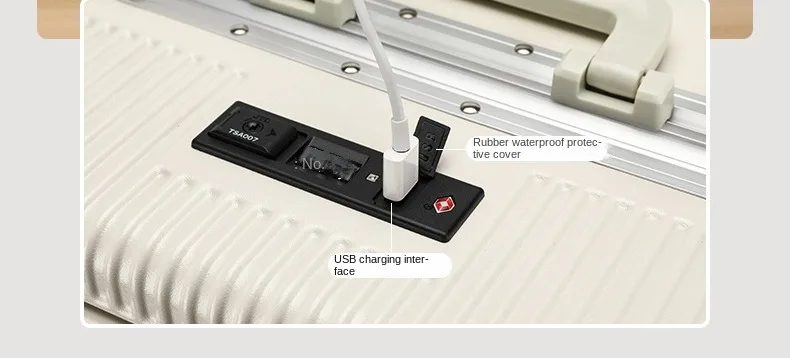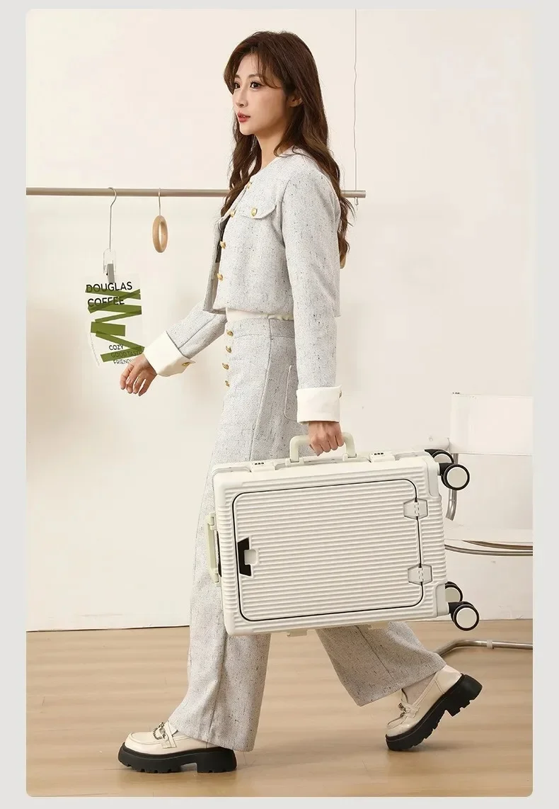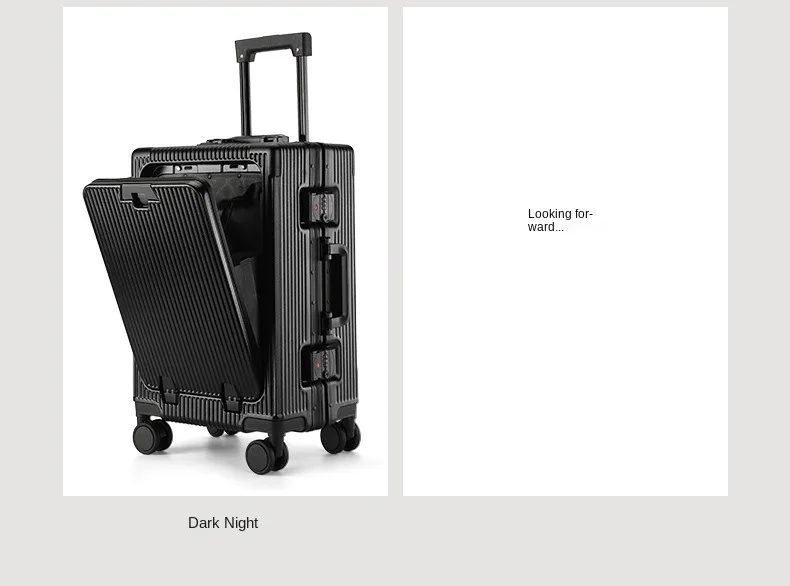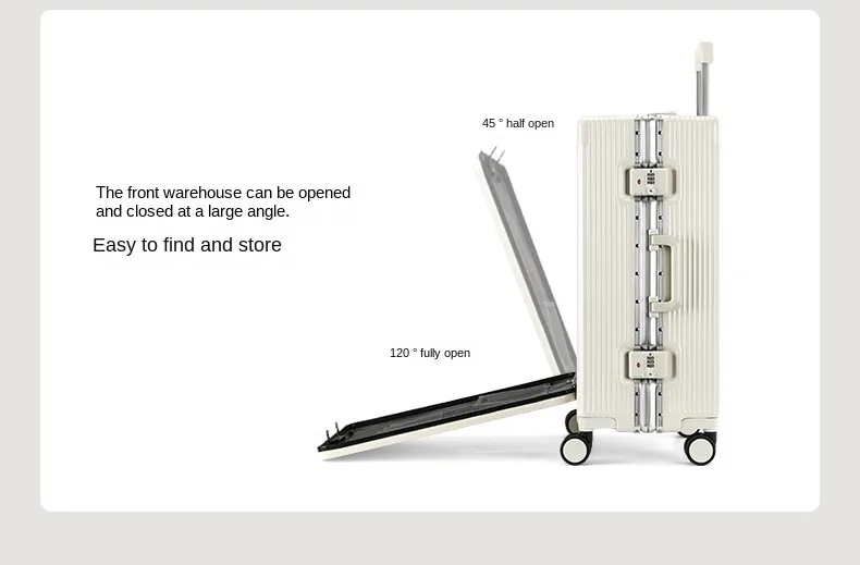 Aluminum Alloy Frame Suitcase Front Opening Pocket with USB Charging Plug Rolling Luggage Trolley Case Bag with Spinner Wheel