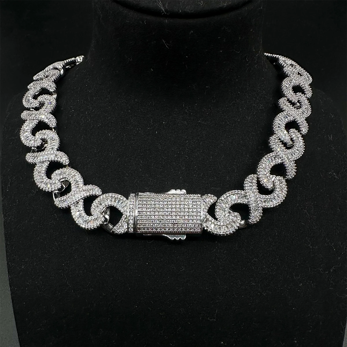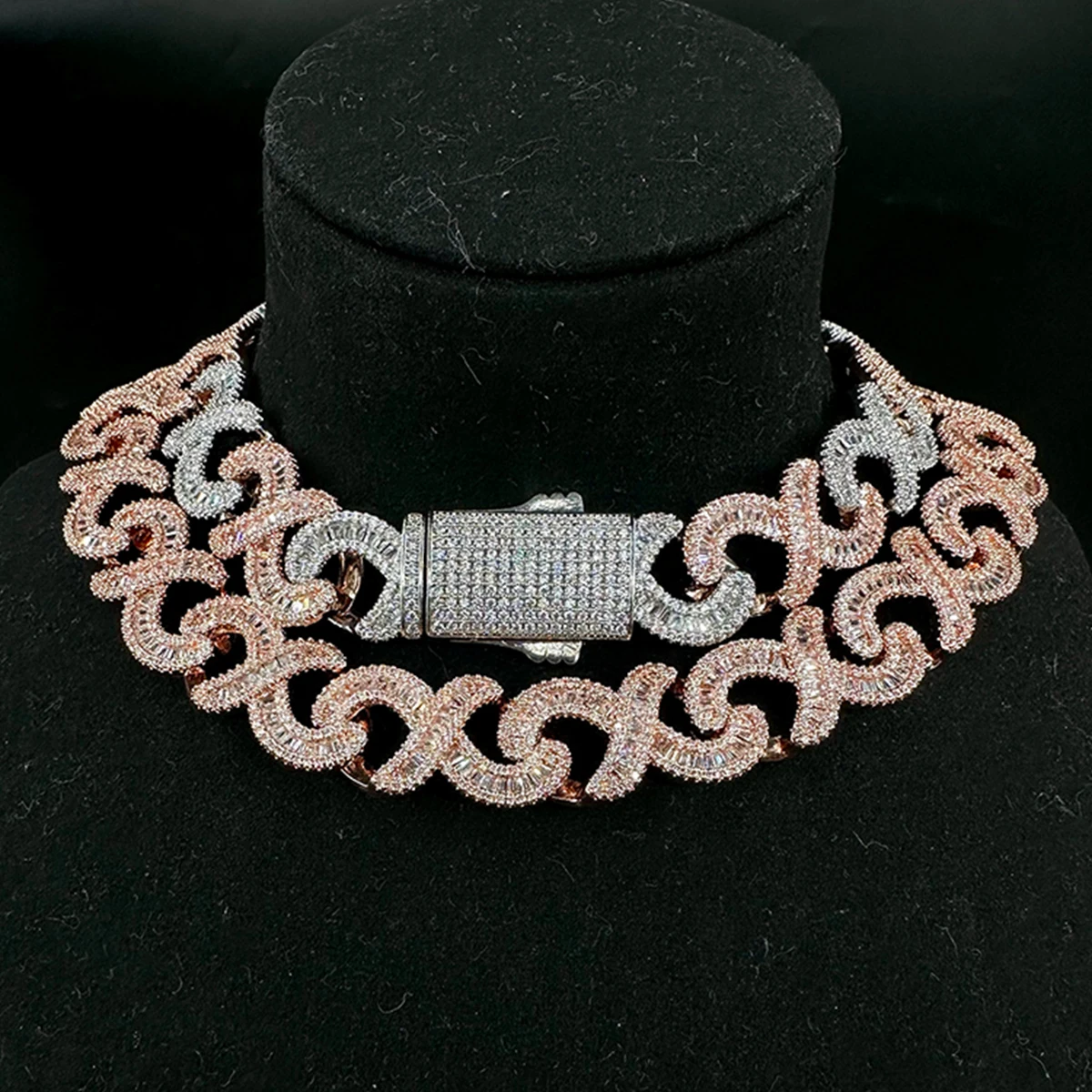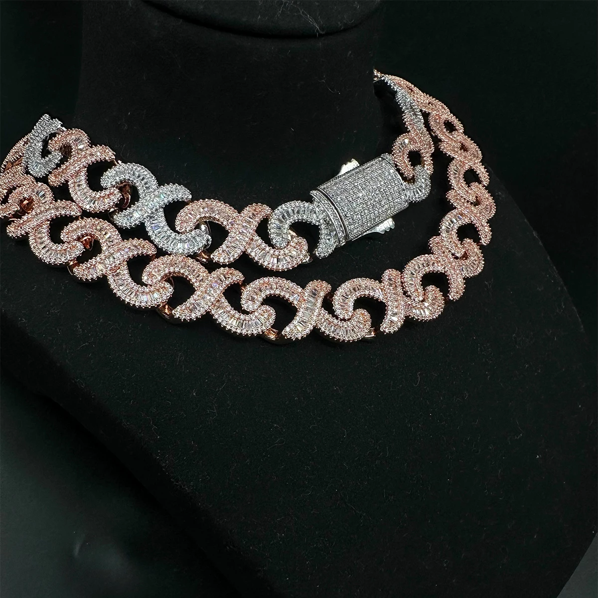 Aokaishen Spring Clasp Baguette Infinity Chain for Women Necklace Choker Real Gold Plated Hip Hop Jewelry
