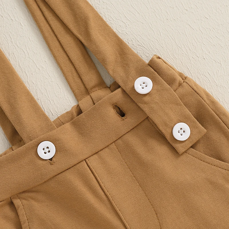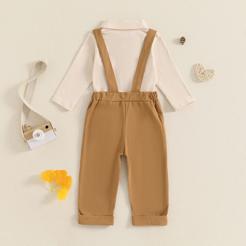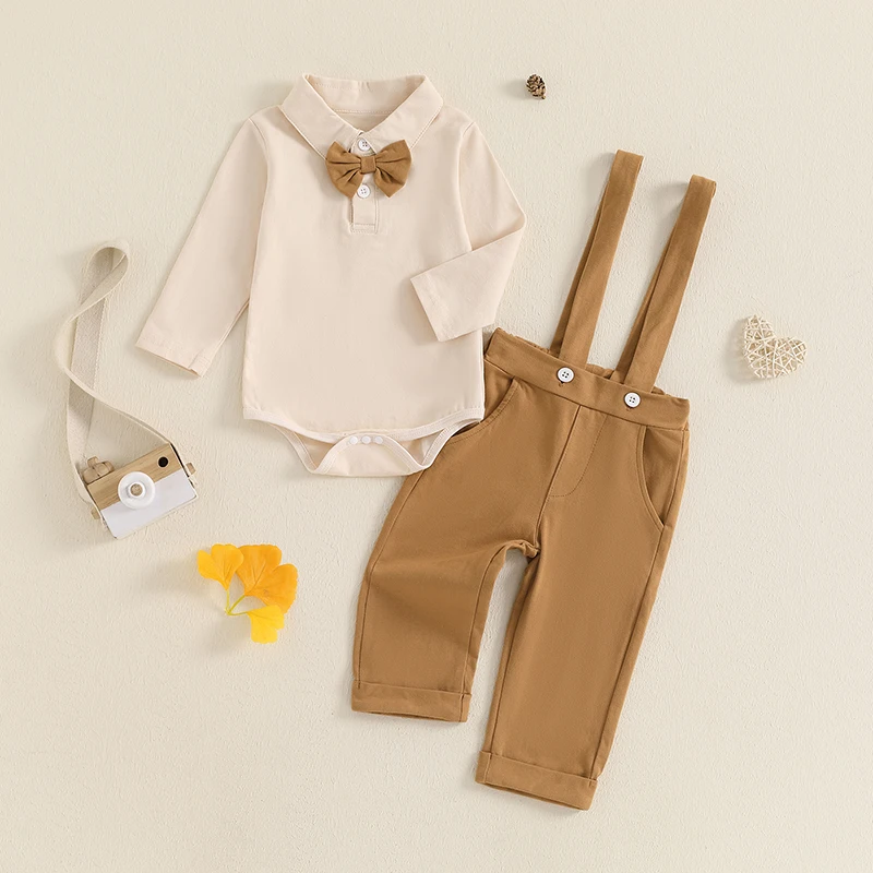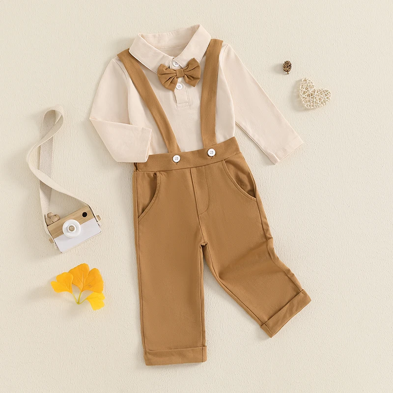 Baby Boys Fall Outfits Bowite Turn-Down Collar Long Sleeve Rompers Suspender Pants 2Pcs Clothes Set