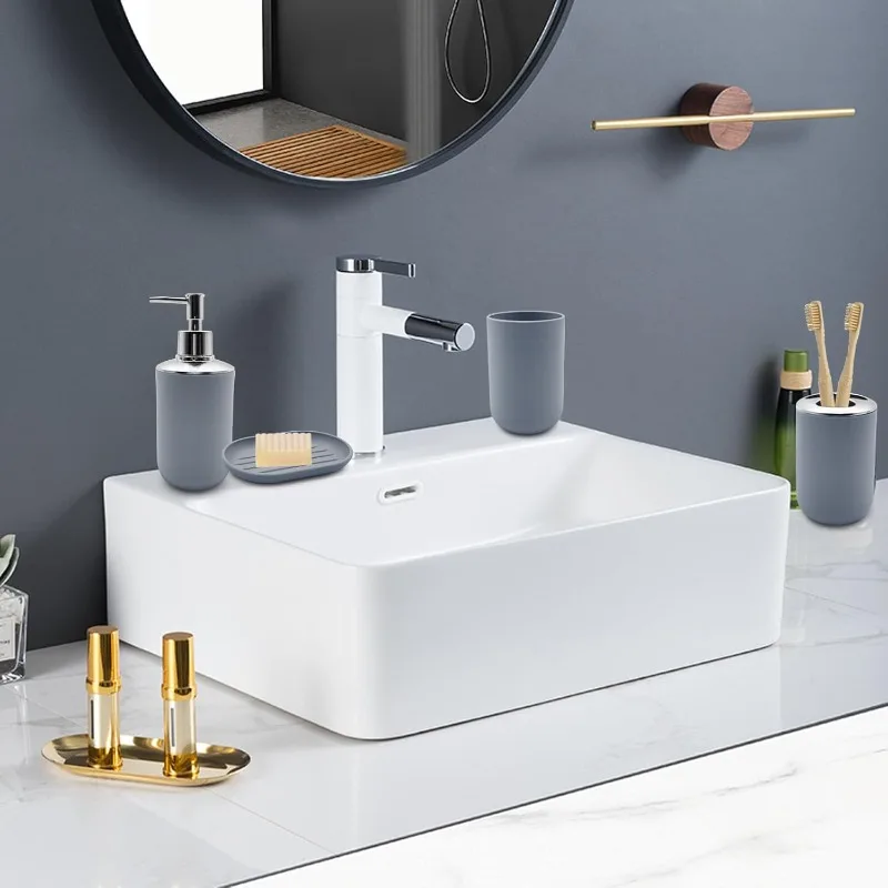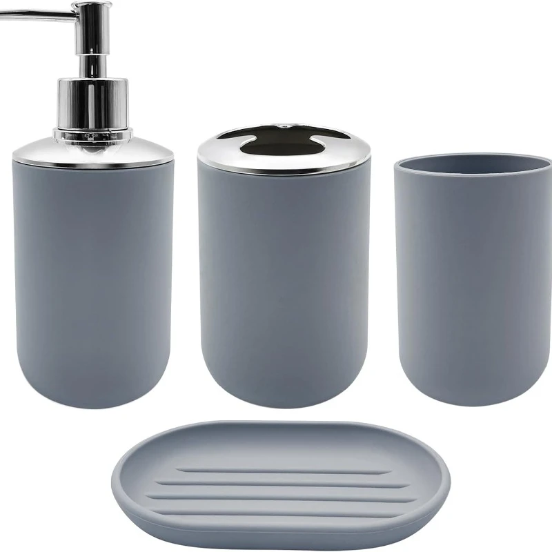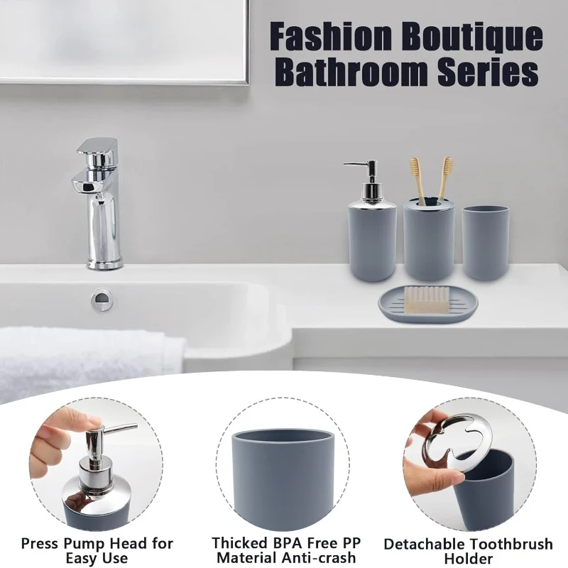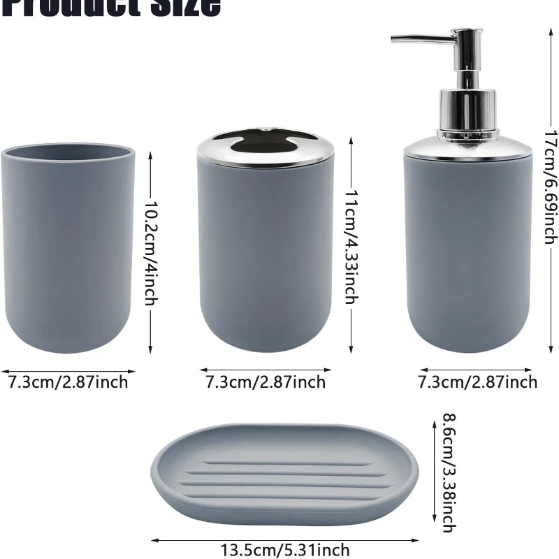 The gray bathroom accessory is made of premium resin, sturdy and BPA free, it won't be break easily like the glass or ceramic, which could be used for long times. The bathroom accessories set includes 1pc soap dispenser, 1pc toothbrush holder, 1pc Tumbler, 1pc soap tray. The whole set will keep your bathroom well organized neatly.