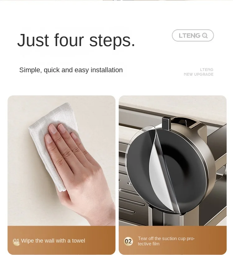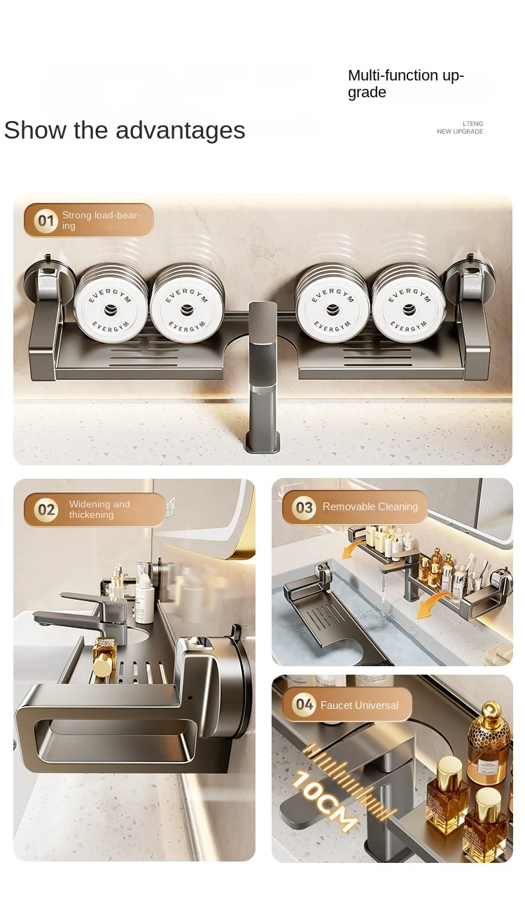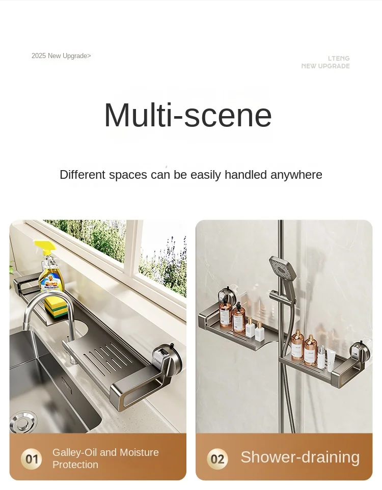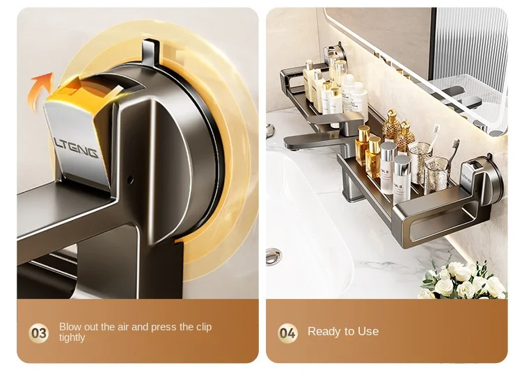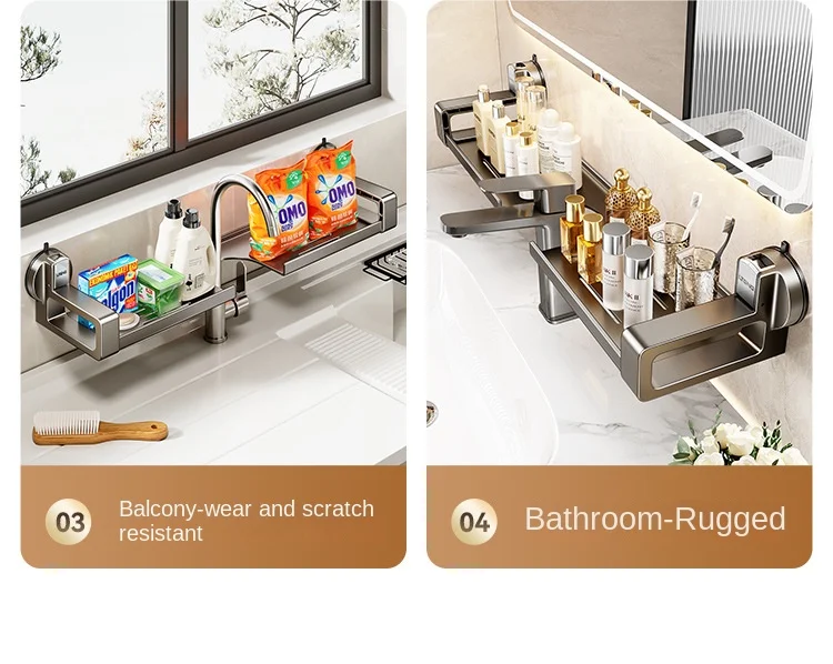 Bathroom Storage Suction Cup Shelves, Non-perforated Installation, Kitchen, Laundry Sink Multi-scene Application