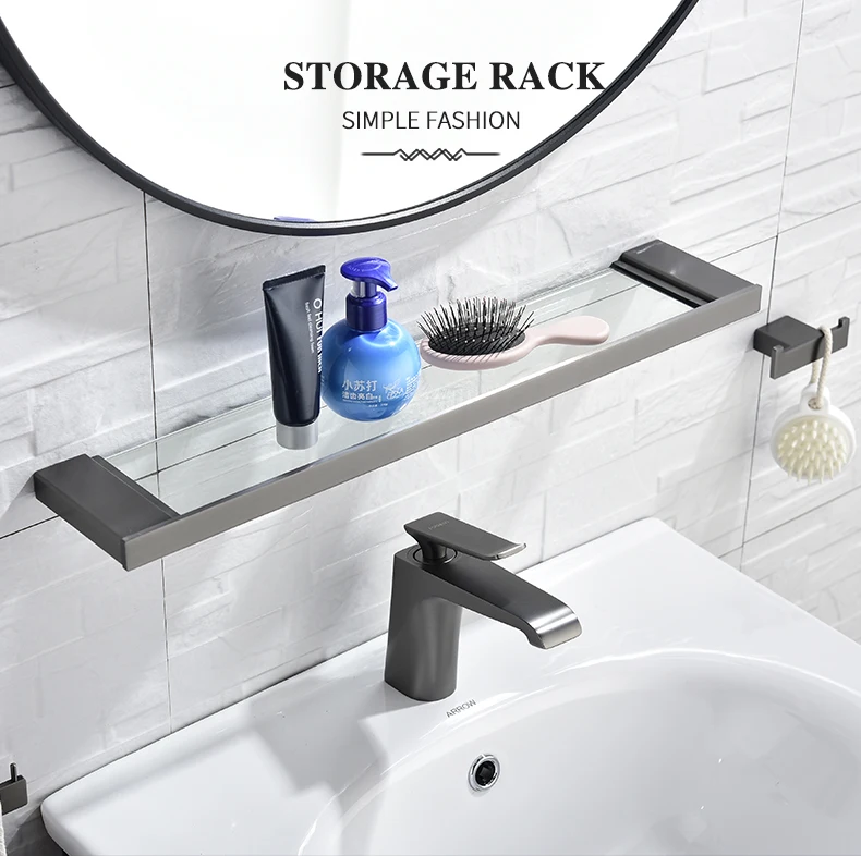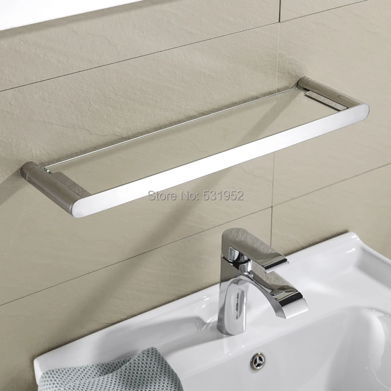 Stainless Steel SUS 304 Bathroom Glass Shelf Wall Mount Glass Towel Rack Kitchen Storage Towel Hanger Rack