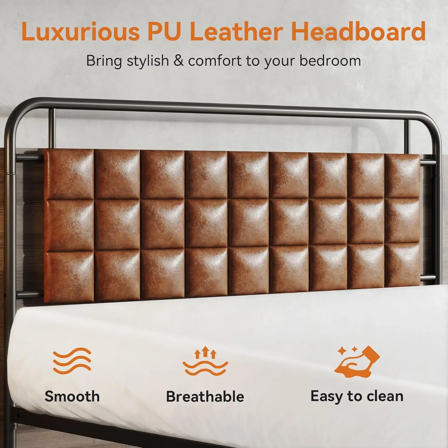 【Premium PU Leather Headboard】Our bed frame features high-quality faux leather with SGS certification and P2 eco-friendly certification. This premium material offers a soft, comfortable touch while being water-resistant, easy to clean, and breathable. The durable, environmentally-friendly fabric withstands wear and tear, maintaining its pristine look for years to come