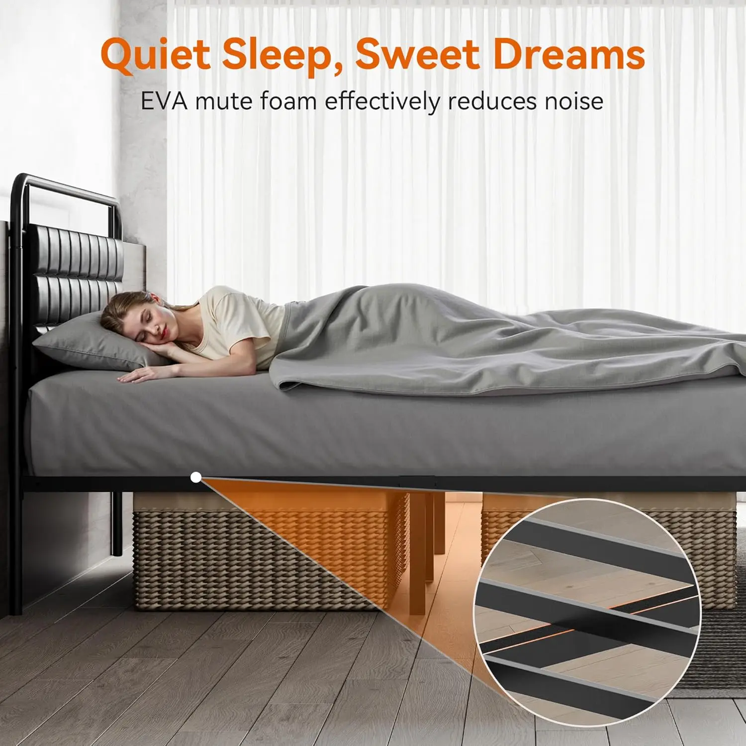 【Noise-Free Design】Featuring 12 reinforced carbon steel ribs with premium noise-dampening strips, this bed frame delivers exceptional stability and silent support. Precision-engineered steel construction ensures long-lasting durability and silence. Experience the perfect blend of robust support and peaceful sleep with our meticulously designed bed frame