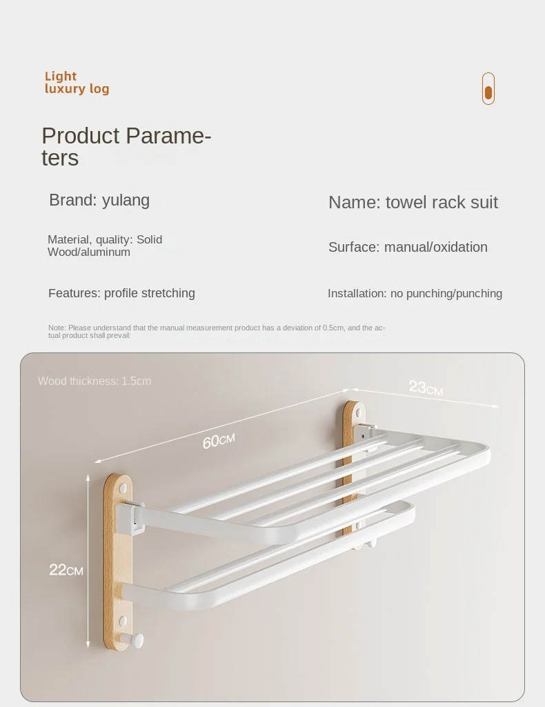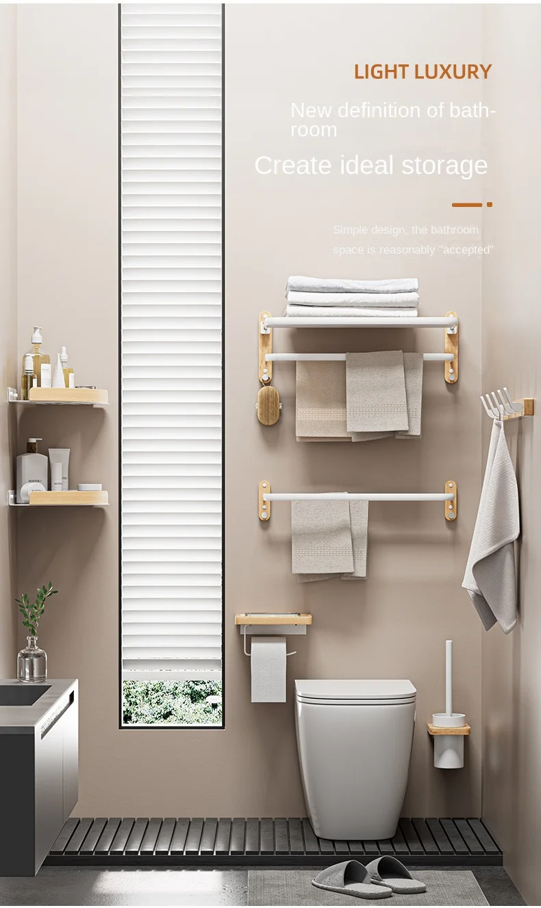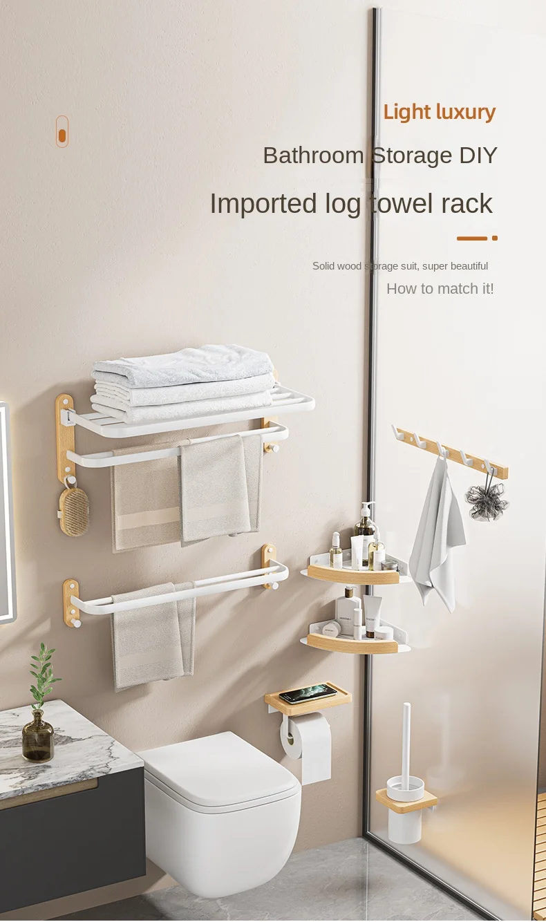 Beech towel rack no punch bathroom shelf toilet wall mounted washroom storage organizer bath towel holder bathroom accessories
