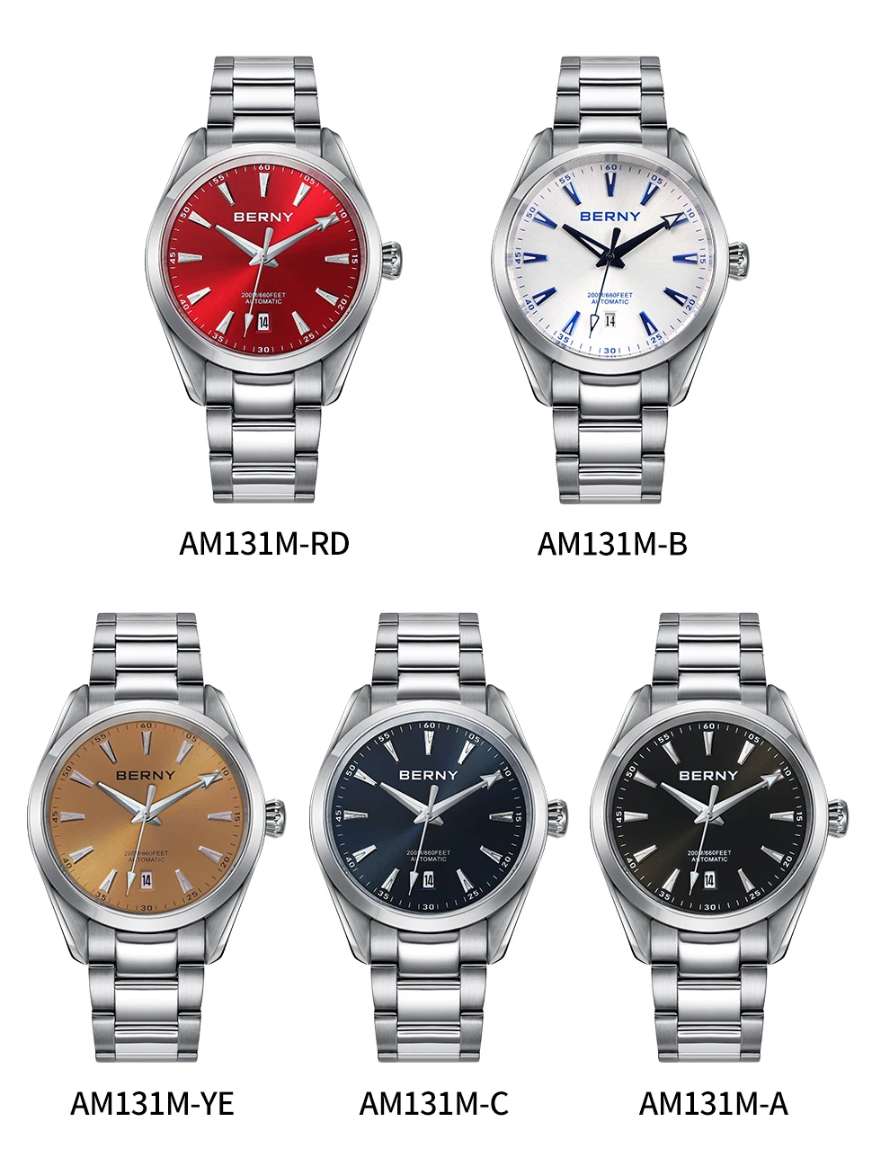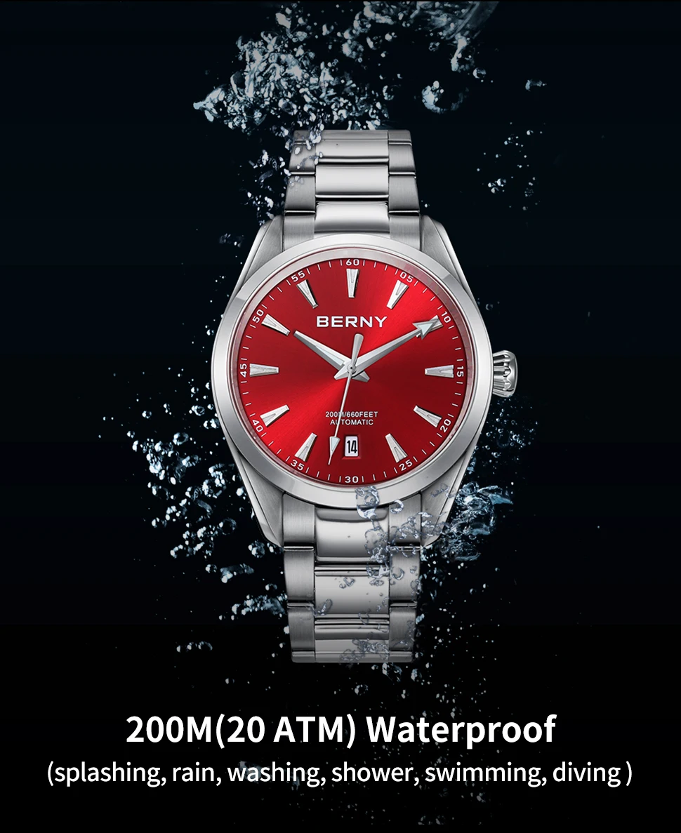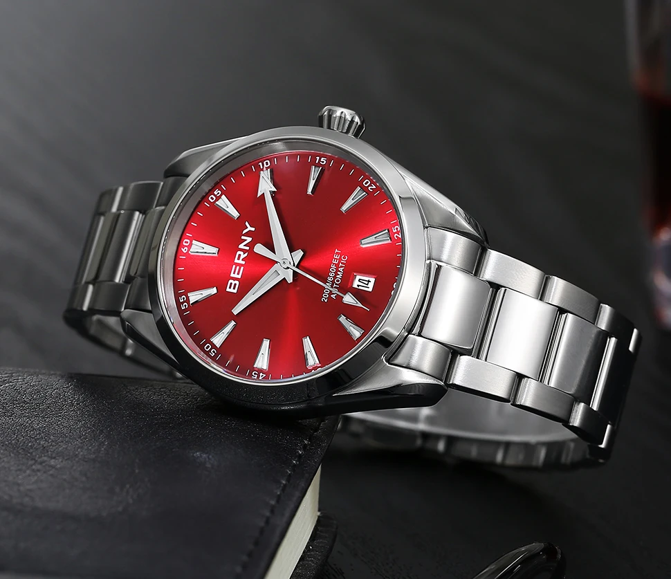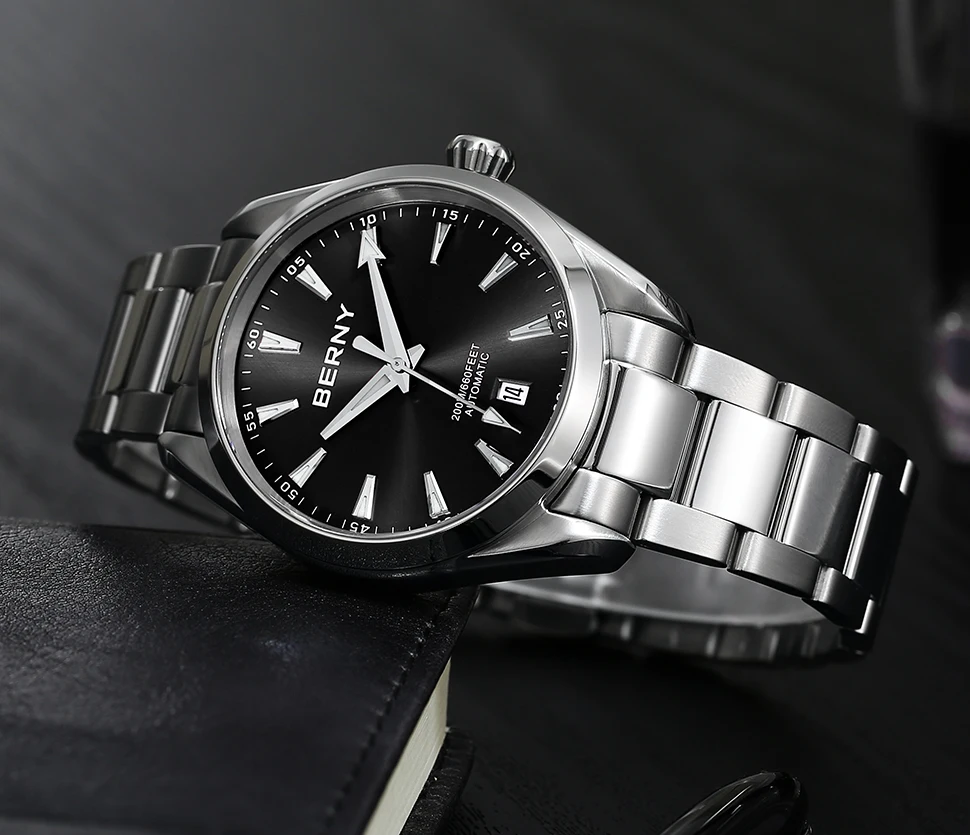 BERNY Men Mechanical Wristwatch PT5000 Automatic Watch For Male Stainless Steel Luminous Sapphire 20ATM Waterproof Mens Watch