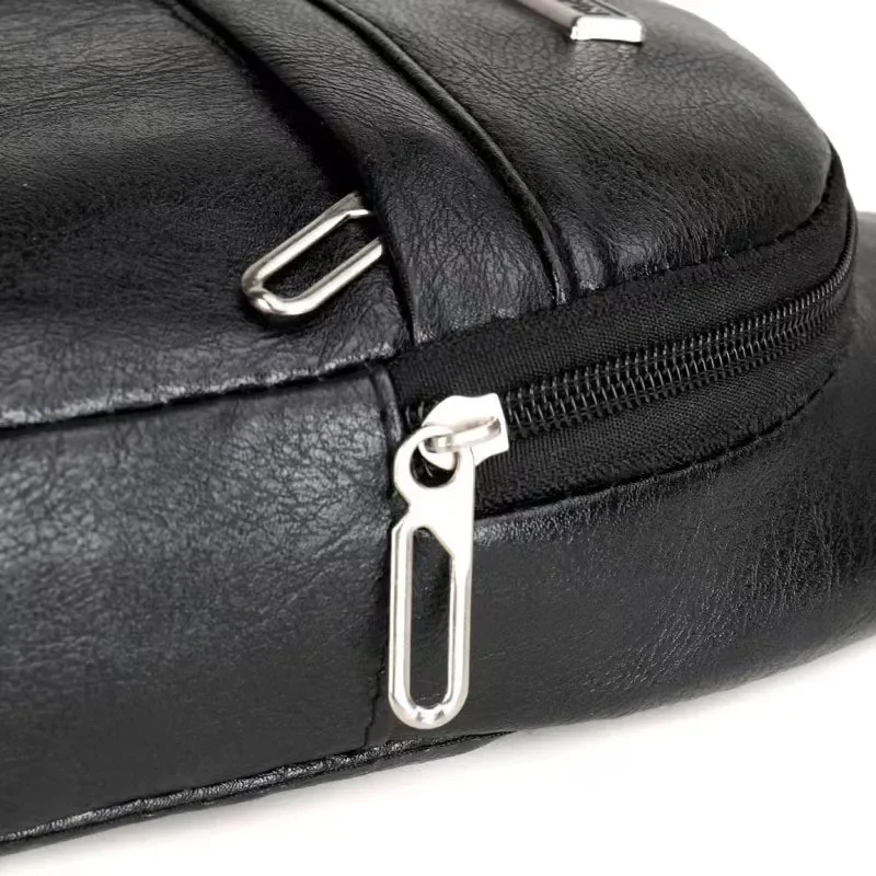 Black PU Material Simple Retro Fashion Men Crossbody Bag Sling Bag