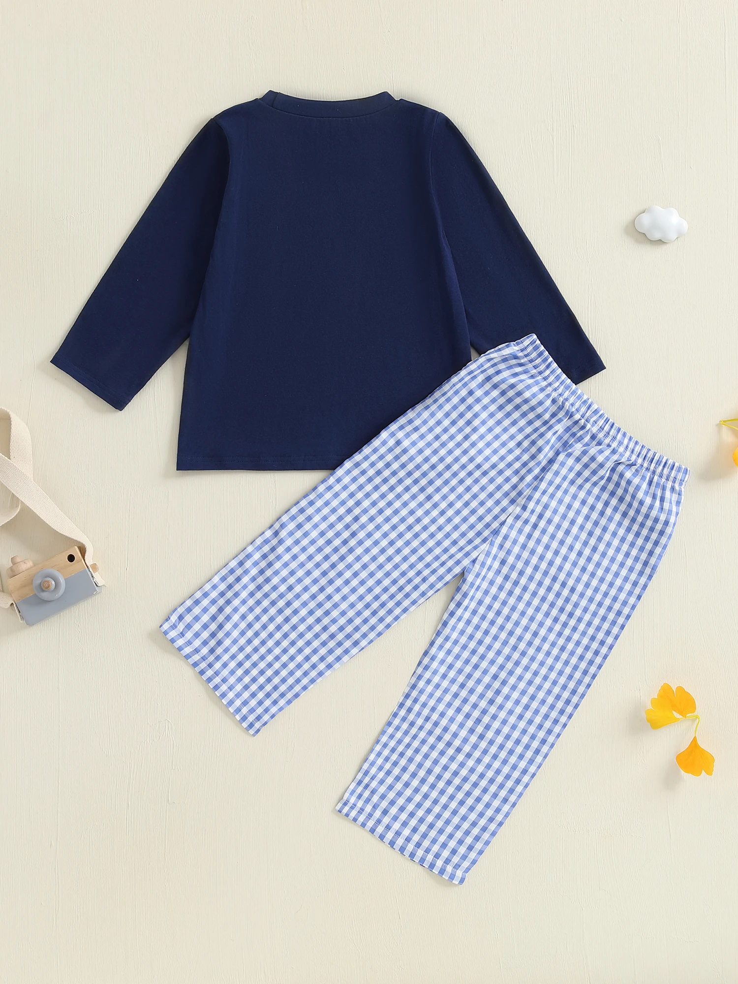 Kids Boys Fall Outfits Cartoon Digger Embroidery Long Sleeve Tops and Plaid Long Pants 2Pcs Clothes SetSize (cm)