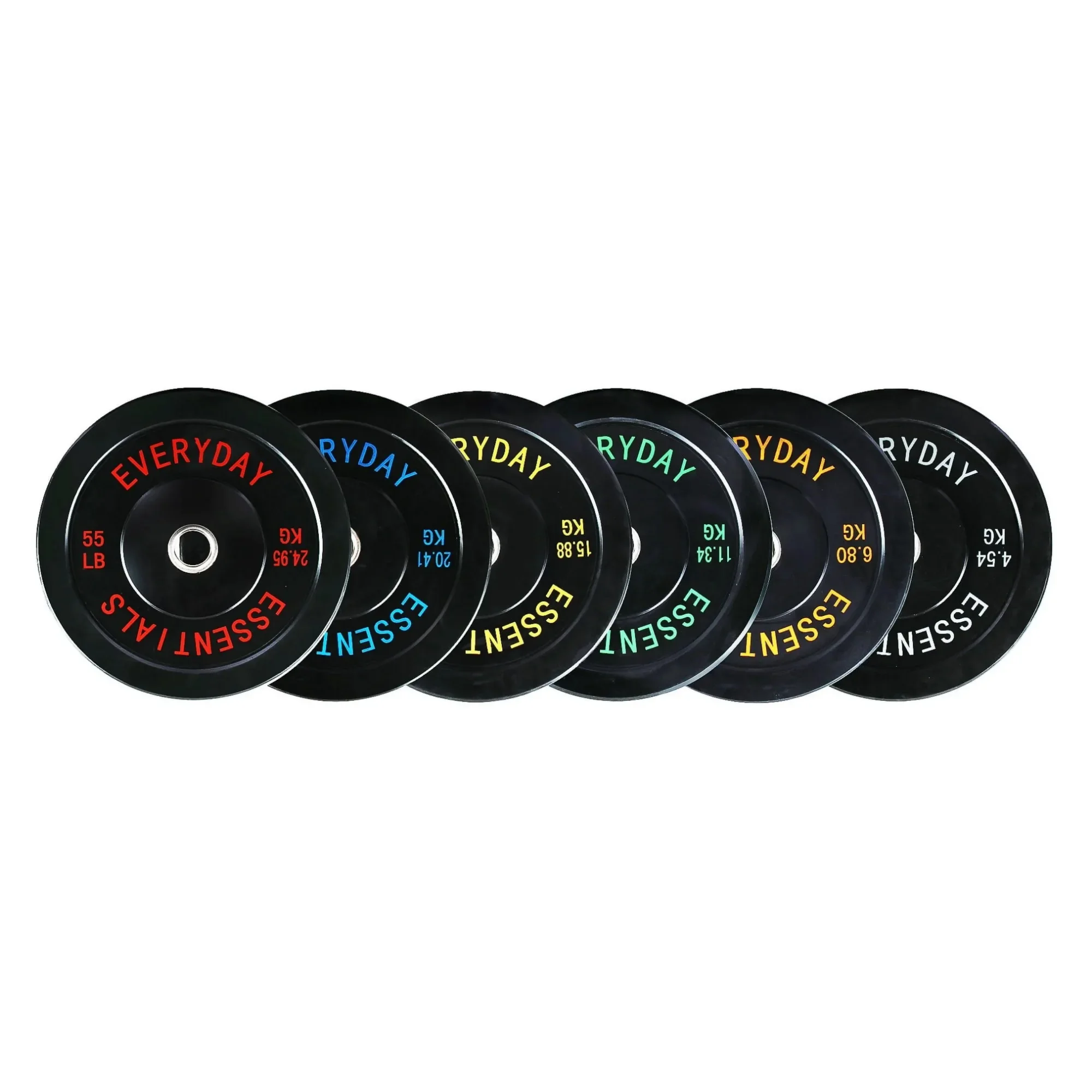 ***Important Note - 10-pound plates are not designed to be used individually. To ensure that all plates have the same diameter, all standard 10-pound plates are thin, so they will bend if used individually. This can damage your 10-pound plates. ***Overview: Bumper Plates, or simply "bumpers," are Olympic-sized plates made of thick, dense rubber. They are designed to safely drop a loaded barbell without damaging your weightlifting platform, the plates themselves, or the floor. The high-density rubber plates are lined with a durable stainless steel liner to withstand repeated drops. They protect not only any type of floor but also your barbell. They are color-coded for easy identification. Weights are in pounds and kilograms. Ideal for strength training, powerlifting, and more.